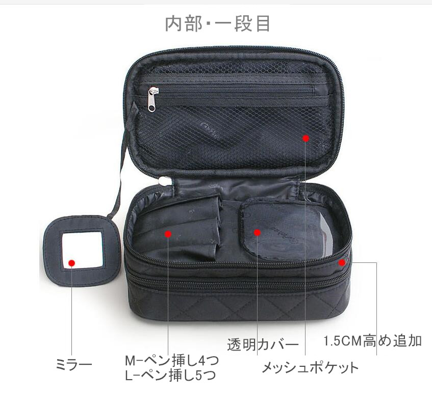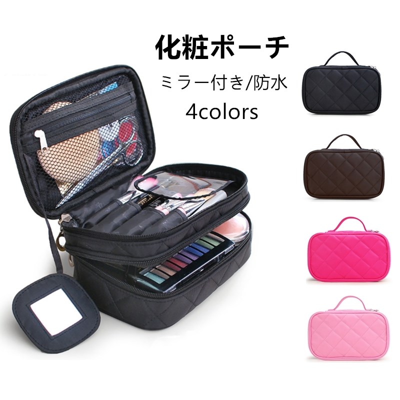 化粧ポーチ 大容量 2段構造 防水 機 バッグ レディースバッグ 化粧ポーチ 続々登場 M(1265円) L(1760円) ブラック ブラウン ピンク ローズ
