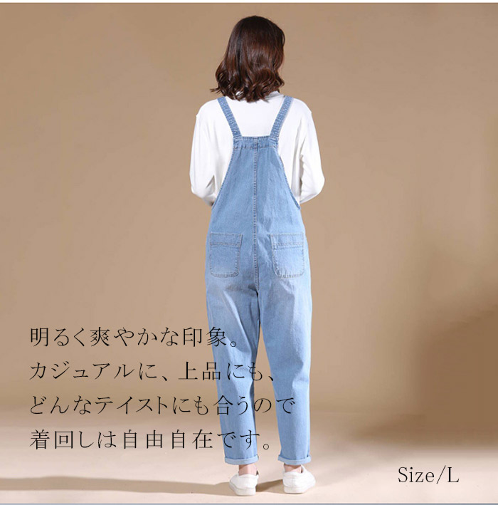 サロペット デニム パンツ リラックス ジーンズ レディース サロペットパンツ コンビネゾン ジャンパースカート 大きいサイズ 大人 マタニティ オーバーオール ロング きれいめ オシ オールインワン