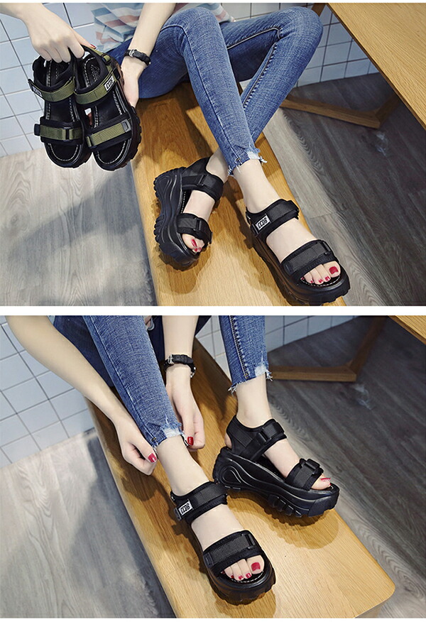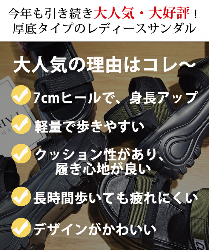 スポーツサンダル 7cmヒール 厚底サ レディース靴 サンダル スポーツサンダル 特集 ブラック グリーン 35(内寸22.5cm) 36(内寸23cm) 37(内寸23.5cm) 38(内寸24cm) 39(内寸24.5cm) 40(内寸25cm)
