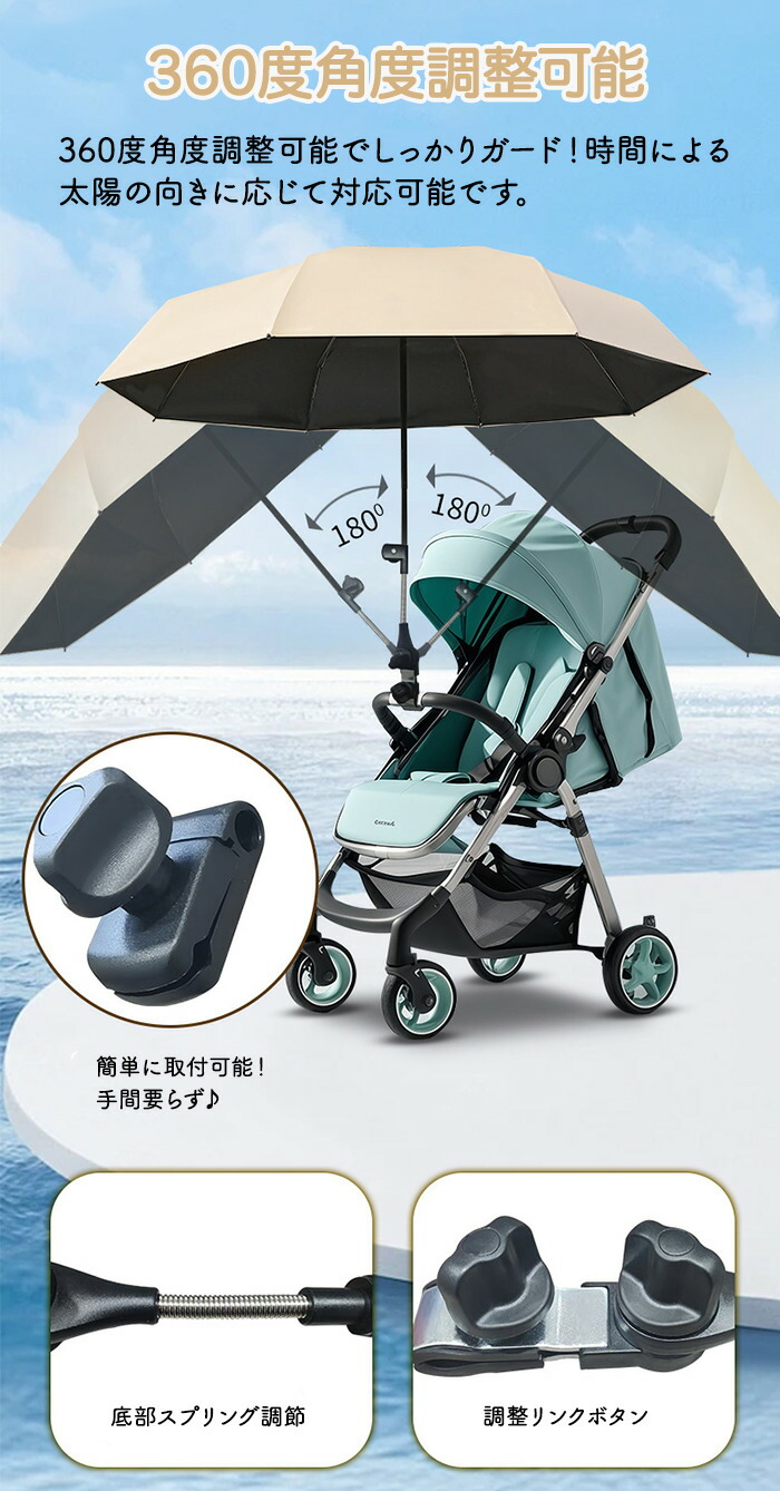 ベビーカー 傘 取り付け 日傘 折りたため ベビーカーに日傘をつける スタンド ホルダー UVカット 固定 日焼止め 角度調整 防風 雨の日 ハンズフリー 傘立て ペットカート 晴雨兼用 紫外線 撥水 8骨傘 直径96cm 大きめ 軽量 パラソル コンパクト ベビーカー 傘 日傘 折りたため スタンド ホルダー UVカット 傘固定 傘スタンド 日焼止め 角度調整 防風 雨 雨の日 ハンズフリー 傘立て ペットカート 自転車用 晴雨兼用 紫外線カット 撥水加工 8骨傘 直径96cm 大きめ 耐久性 軽量 防風 パラソル コンパクト 持ち運び便利 折り畳み傘 日傘 傘 雨晴れ兼用 紫外線 暑さ対策 撥水加工 8骨傘 UVカット 大きめ 強い 耐久性 ベビーカーに取付可能 ベビーカー取付 付け替え可能 両用 角度調整 固定 手が空くベビーカー用 ベビーカー傘 ベビーカー専用傘 ベビーカー専用日傘 パラソル 固定金具付き オールシーズン