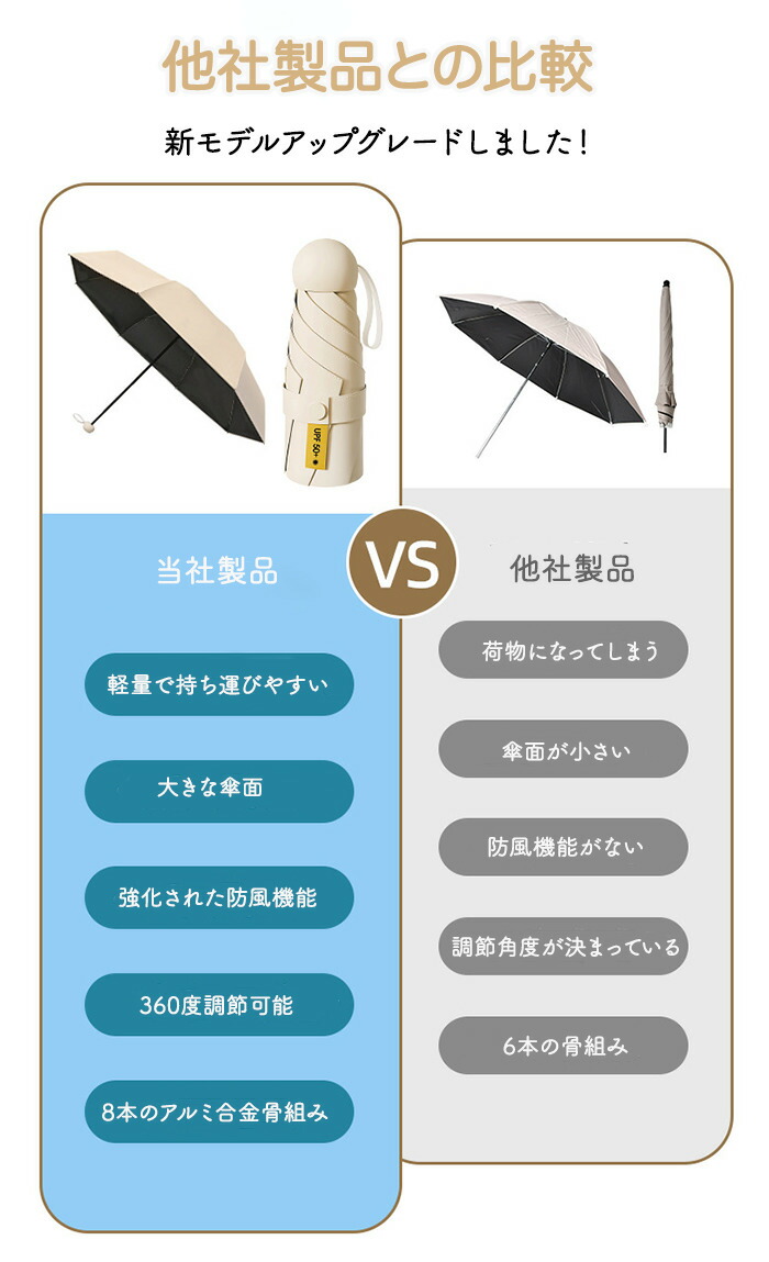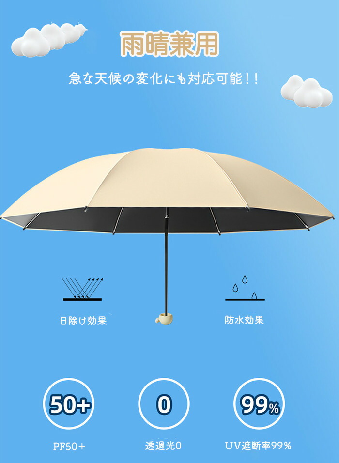 雨晴れ兼用でオールシーズン使える!紫外線や日除け対策・雨の日にも大活躍です!撥水加工で軽く振るだけで水滴が落ちる&濡れても乾きやすい!