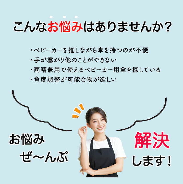ベビーカーを押したまま傘を持つのが大変・手が開かない!そんなお悩みを解決するのがこちらの傘です。ベビーカーに取付可能で両手が空きベビーカーを押すことに集中できます。ベビーカーを押して子供を抱っこしたままでも傘はベビーカーに取付できるので手があく便利な傘です。