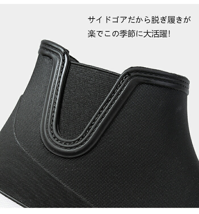サイドゴアデザインで脱ぎ履き簡単!靴ひもやストラップ、バックルのよう に足首をホールドする役割を担っています。 足にフィットするため履き口の 構造が狭くなっているので、長い靴下をオススメです。