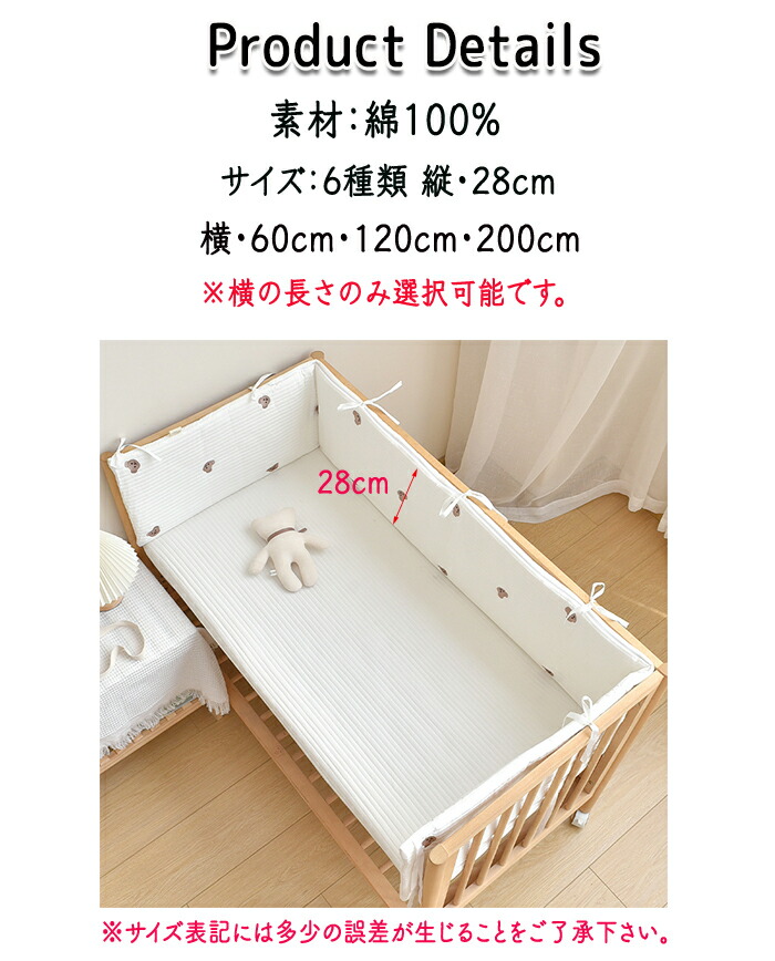 ベビーベッド ガード ベビーベッドガー ベビー 寝具 ベッド ベッドガード サイドガード 新作 グレー星柄 イエロー星柄 熊柄 無地白柄 ウサギ柄 28×60cm 28×120cm 28×200cm 28x240cm