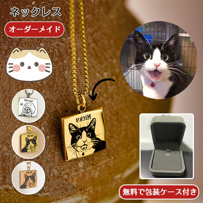 ネックレス ペット 刻印写真 メンズ レディース かわいい カスタム刻印 アクセサリー 犬 猫 四角形 ペットジュエリー 名入れ メモリアルグッズ 母の日 プレゼント オリジナル オリジナルグ ギフト