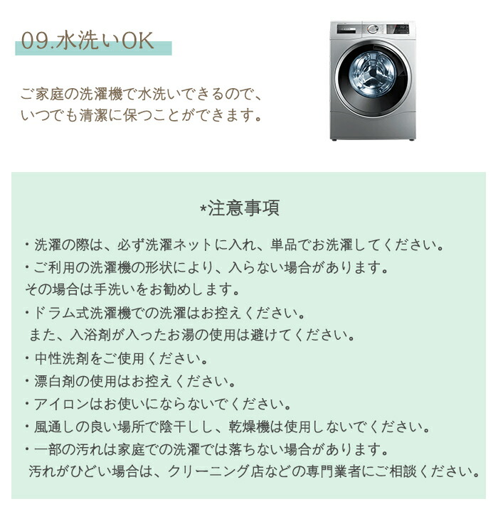 ◆洗濯機で洗えるため、お手入れも簡単です。