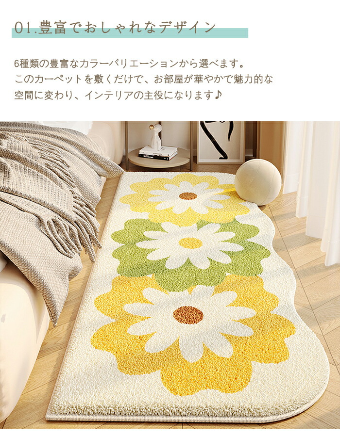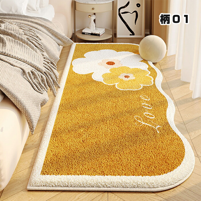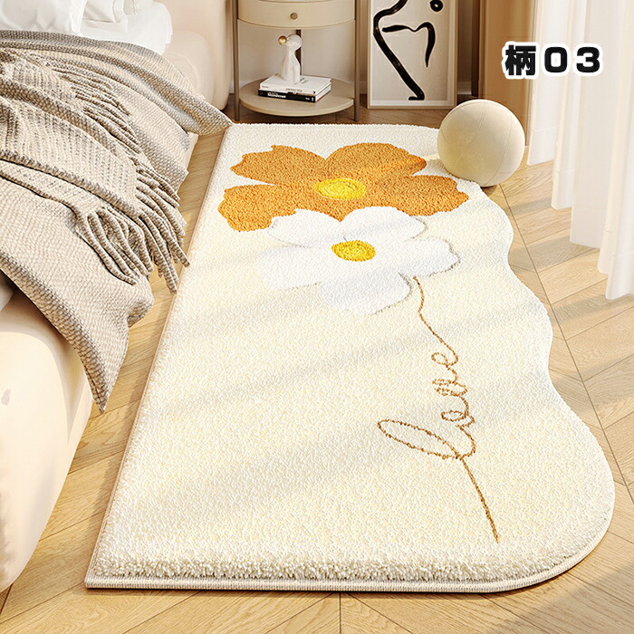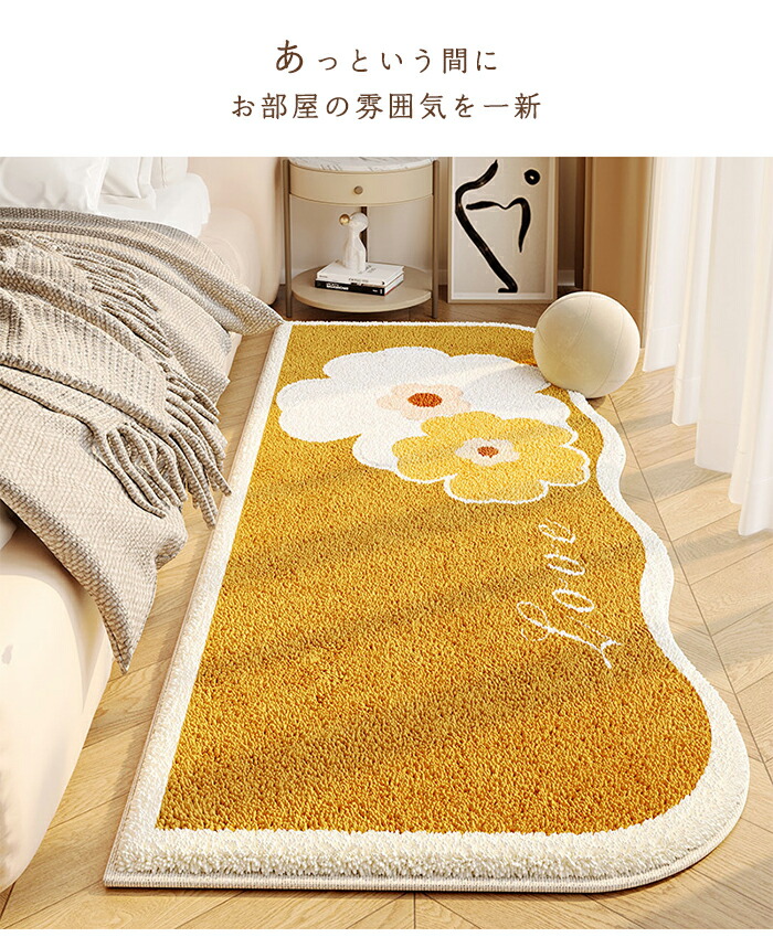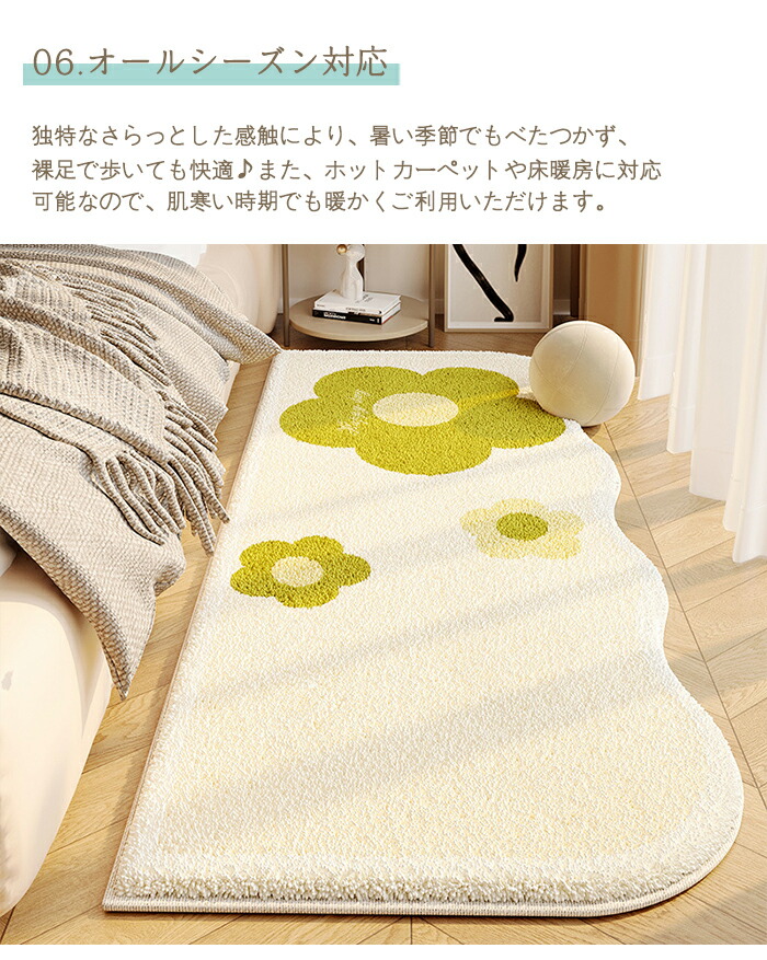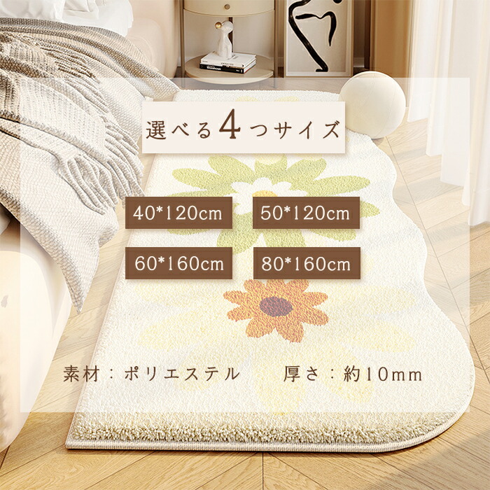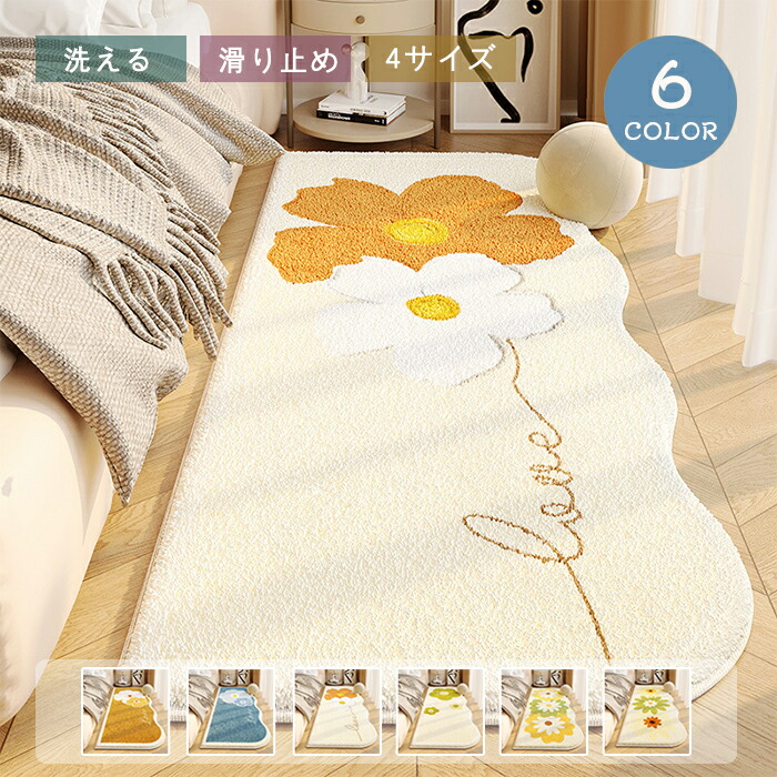 ラグ 洗える ラグマット 80×160cm 花柄 カーペット 北欧 おしゃれ 滑り止め付 絨毯 厚手 異形 不規則 ホットカーペット対応 床暖房対応 ふわふわ ベッドサイド マット シ かわいい