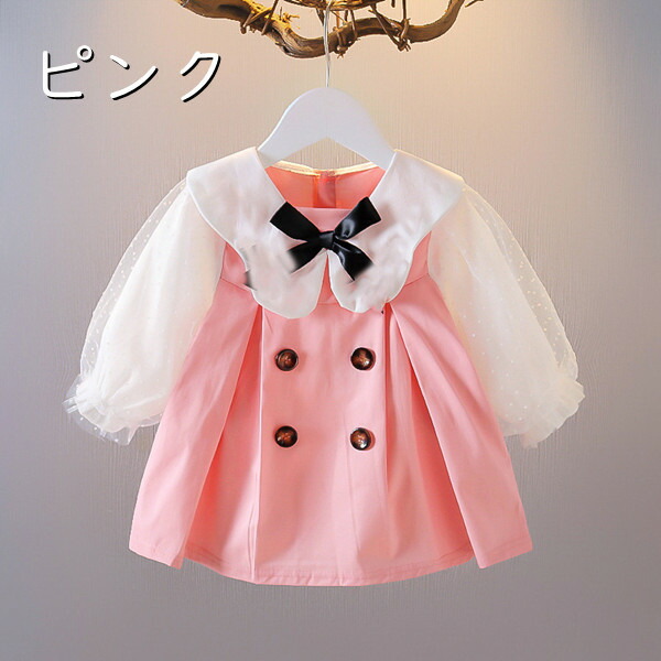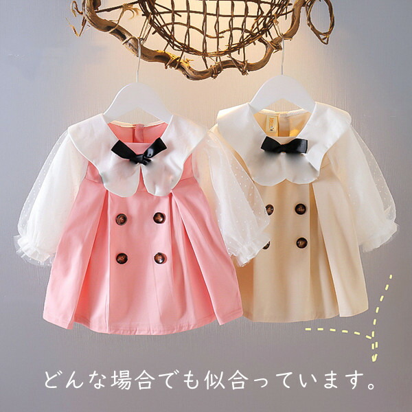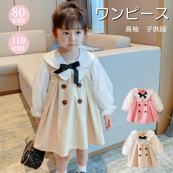 ベビードレス 長袖 子供服 女の子 ワ キッズ ワンピース 豊富 ピンク ベージュ 80cm 90cm 100cm 110cm