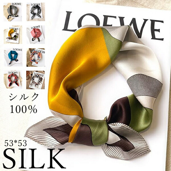 シルクスカーフ 53*53cm オフィ バッグ 小物 ブランド雑貨 続々登場 1 2 3 4 9 10 11 12 13