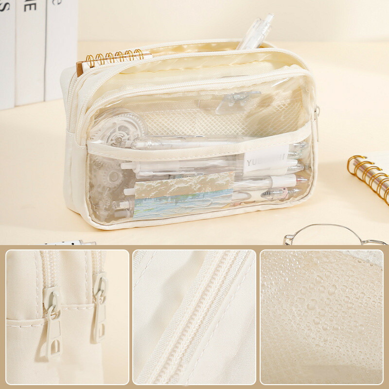 ペンポーチ ペンケース 透明ポケット 文房具 事務用品 筆記具 ペンケース 特集 ブルー ベージュ ブラック グリーン