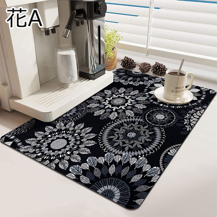 水切りマット 珪藻土 吸水マット キッ キッチン用品 食器 調理器具 新作 30*40cm 40*50cm 50*60cm 花A 花B チェックA チェックB コーヒーA コーヒーB ブラック ブルー グレー