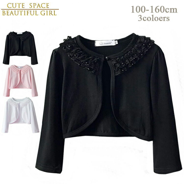 キッズ ドレス 用 ジャケット 発表会 キッズ トップス カーディガン ボレロ 人気 ブラック ホワイト ピンク 100cm 110cm 120cm 130cm 140cm 150cm 160cm