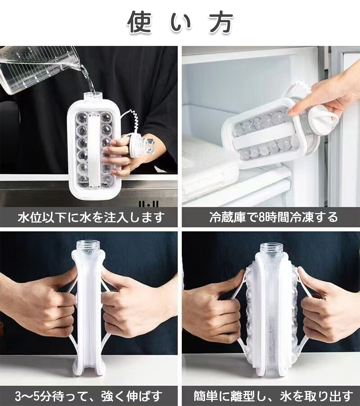 2in1製氷ボトル 丸氷 製氷皿 アイ キッチン用品 食器 調理器具 早い者勝ち ホワイト ピンク グレー