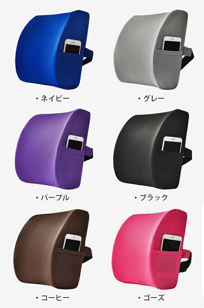背もたれ クッション ランバーサポート ブラック ネイビー グレー パープル コーヒー ローズ