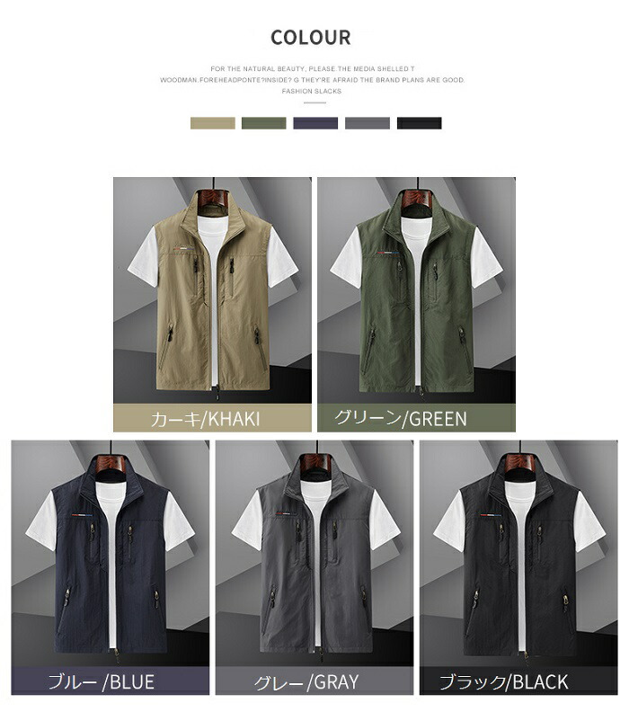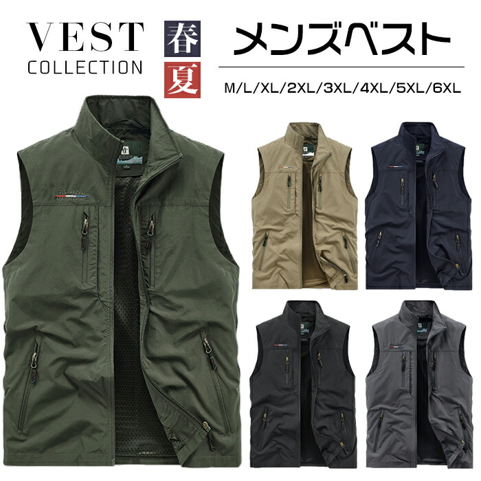 ベスト メンズ 春夏 作業着 大きいサ トップス ベスト ジレ 早い者勝ち グリーン カーキ ブラック グレー ブルー M L XL XXL 3XL 4XL 5XL 6XL