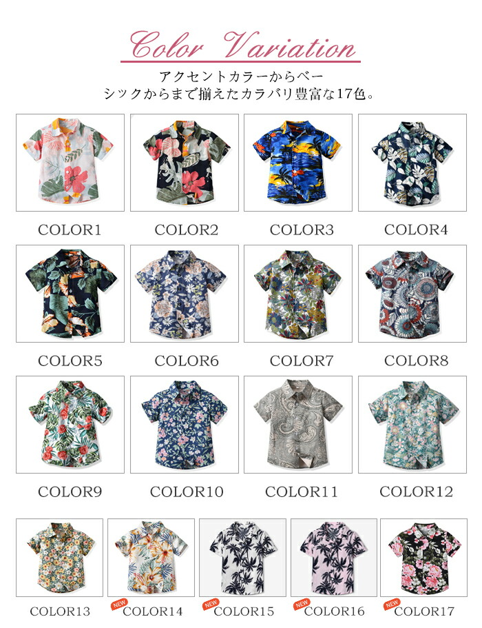 アロハシャツ 親子 ペアルック 親子ペ color1 color2 color3 color4 color5 color6 color7 color8 color9 color10 color11 color12 color13 color14 color15 color16 color17 70cm 80cm 90cm 100cm 110cm 120cm 130cm 140cm 150cm 160cm S M L XL XXL 3XL