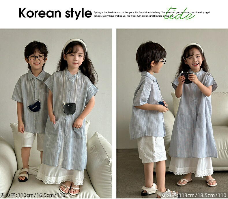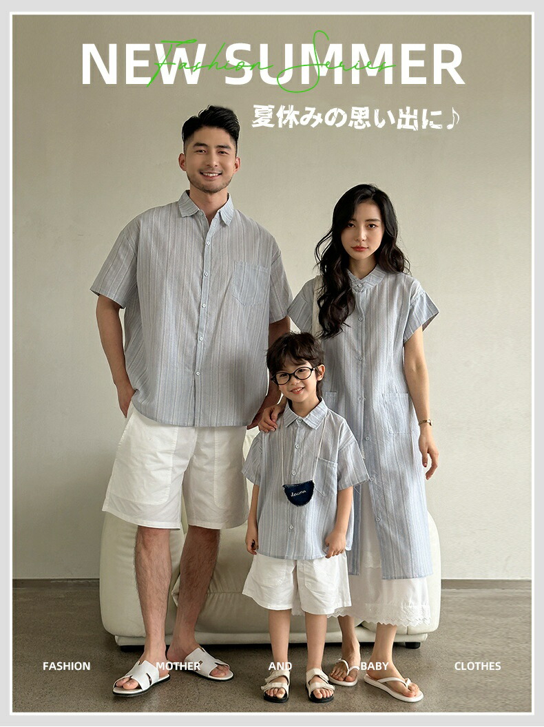 リンクコーデ 親子 セット 夏 親子コーデ 親子 ペアルック ストライプ柄 アロハシャツ メンズ シャツワンピース レディース 韓国 半袖シャツ レース ロングスカート 重ね着 かわいい おしゃれ きれいめ 男の子女の子 子供服 キッズ服 リゾート 家族/カップル/姉妹/兄弟 お揃い 写真撮影 記念日