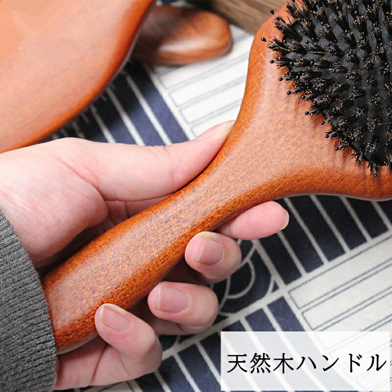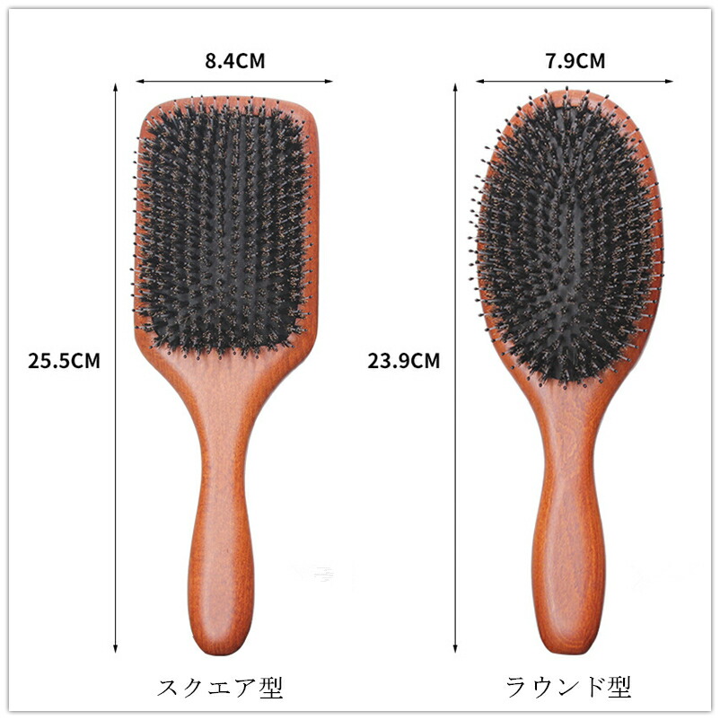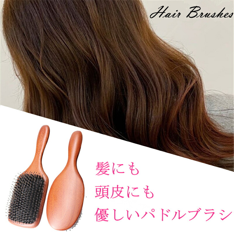 ヘアブラシ 豚毛 パドルブラシ 木製 スクエア型 ラウンド型