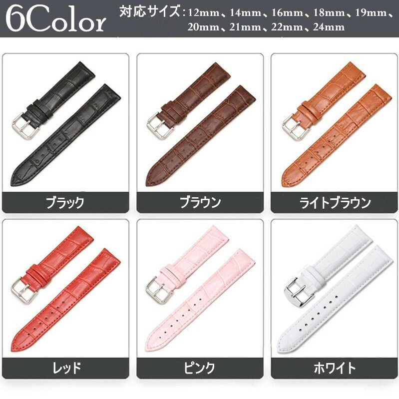 革ベルト レザー 時計 腕時計 交換ベ 腕時計用アクセサリー 腕時計用ベルト バンド 続々入荷中 ブラック ブラウン ライトブラウン レッド ピンク ホワイト 12mm 14mm 16mm 18mm 19mm 20mm 21mm 22mm 24mm
