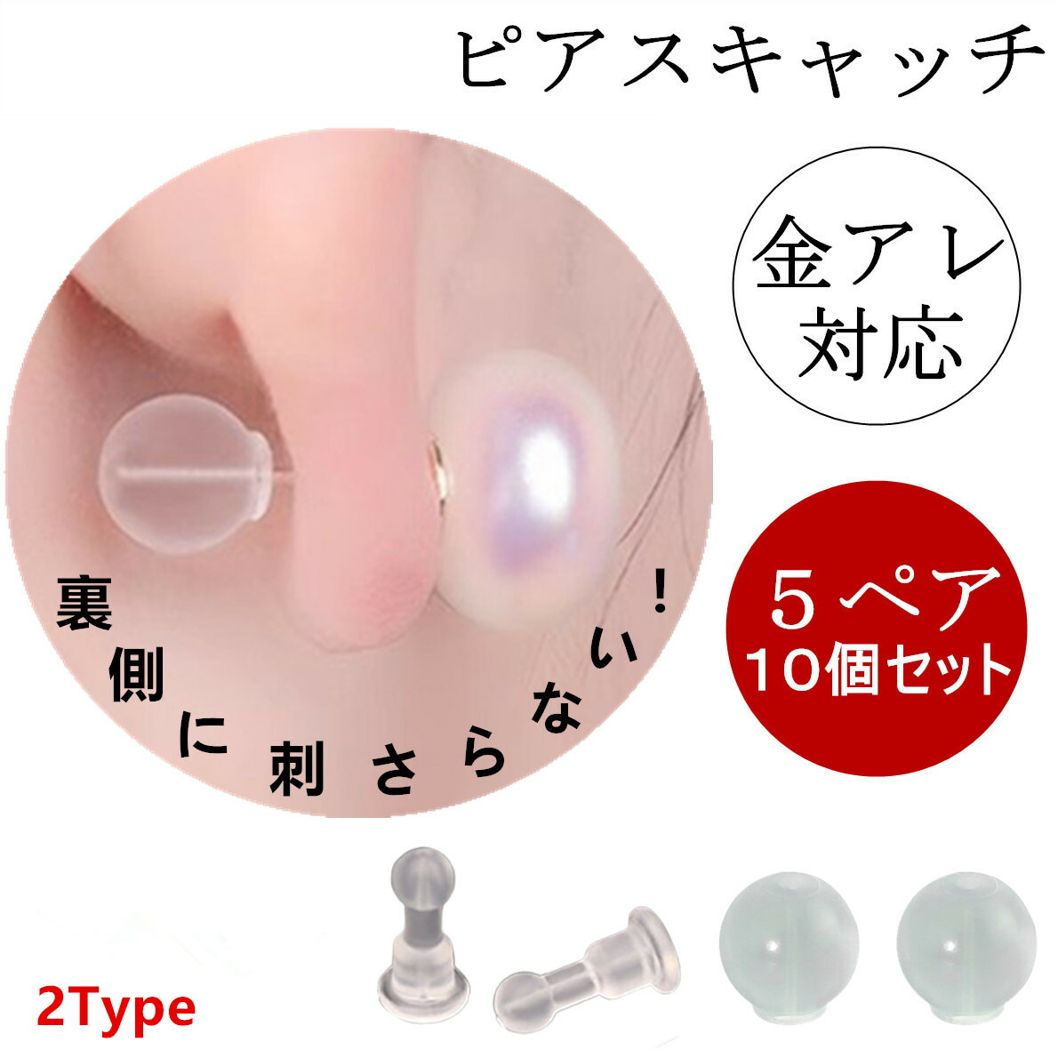 シリコン ピアス キャッチ 5ペア 10個セット 痛くない 裏側 金属アレルギー 対応 ジュエリー アクセサリー シリコンキャッチ ピアスキャッチ キャッチャー ポスト ピアスポスト ポスト金 パーツ