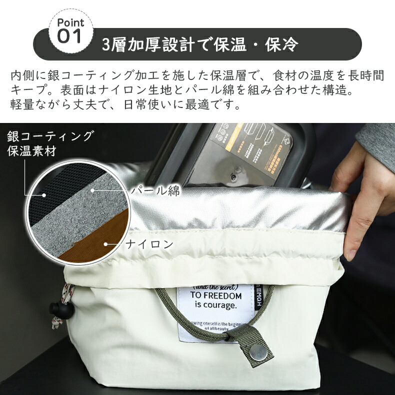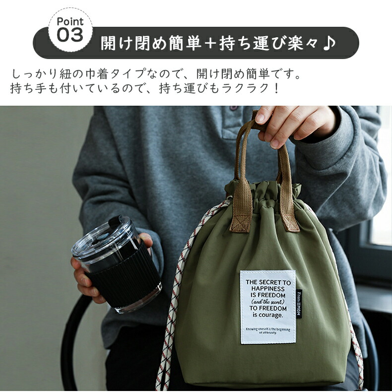 ランチバッグ お弁当袋 巾着 保冷 弁 弁当箱 水筒 子供用弁当箱 水筒 お弁当箱 お弁当袋 お弁当袋 人気 カーキグリーン ブラウン アイボリー