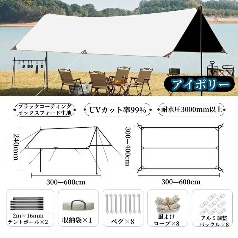 レクタタープ タープテント サイドシー スポーツ アウトドア 超目玉商品 3m*3m 3m*4m 3m*5m 4m*5m 4m*6m アイボリー ページュ 厚手ページュ