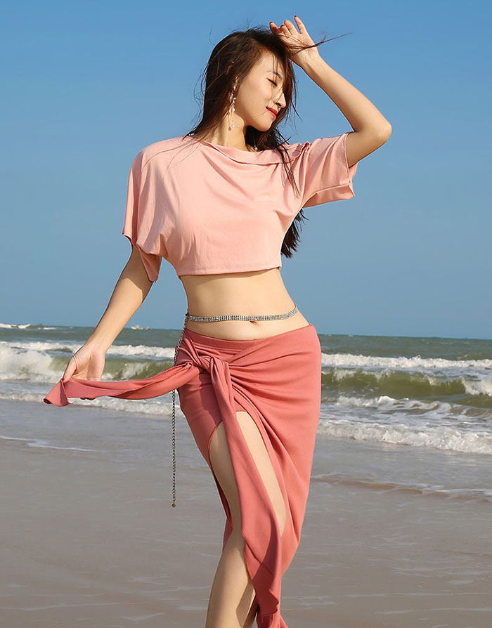 ベリーダンス レッスン着 トップス チ スポーツ アウトドア 人気 ピンク ベージュ ブルー
