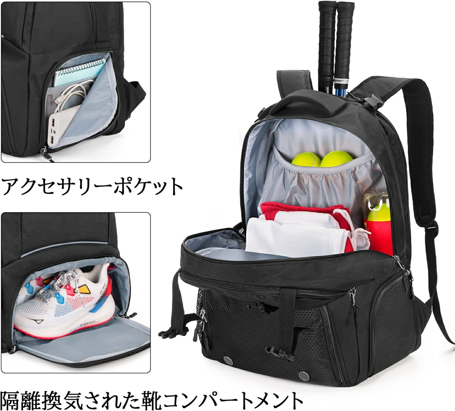 2色 テニスバッグ 2本用 20L テ ブラック グレー