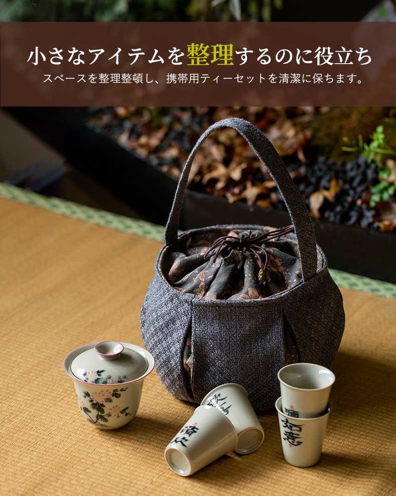 巾着バッグ 綿 ハンドバッグ 茶器 バ コーヒー お茶用品 その他 新作 グレー ブラウン