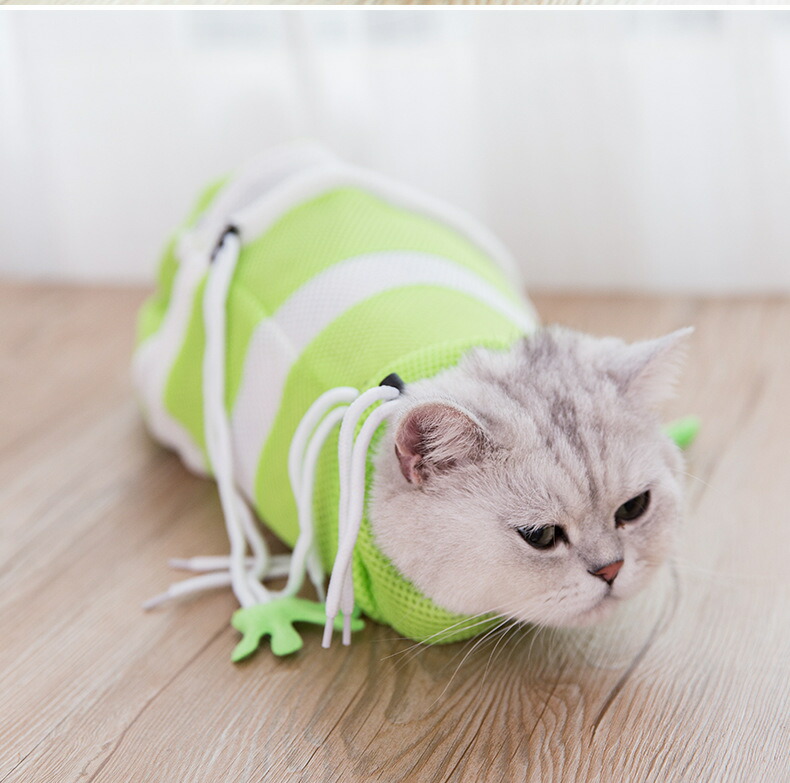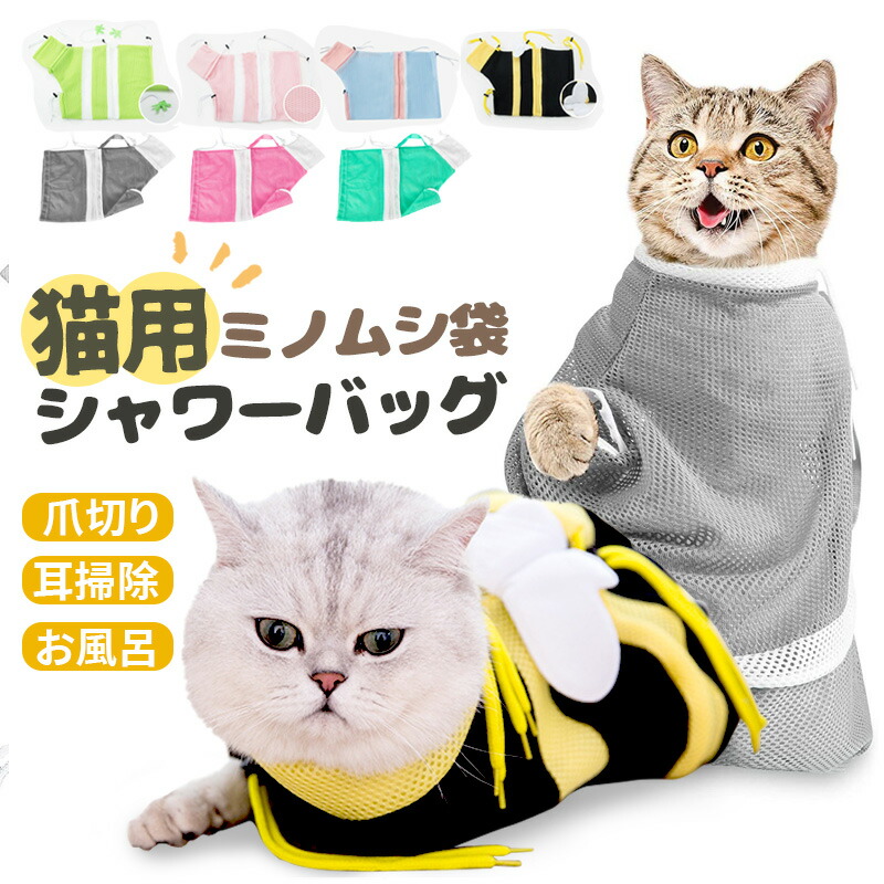猫用 みのむし袋 猫 お風呂ネット袋 TYPE1-グリーン TYPE1-グレー TYPE1-ピンク TYPE2-グリーン/ホワイト TYPE2-ブラック/イエロー TYPE2-ブルー/ピンク TYPE2-ピンク/ホワイト
