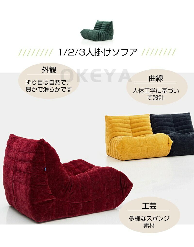 ソファー 2人掛け ソファ TOGOソ カーキ グリーン ワインレッド イエロー ダークグレー