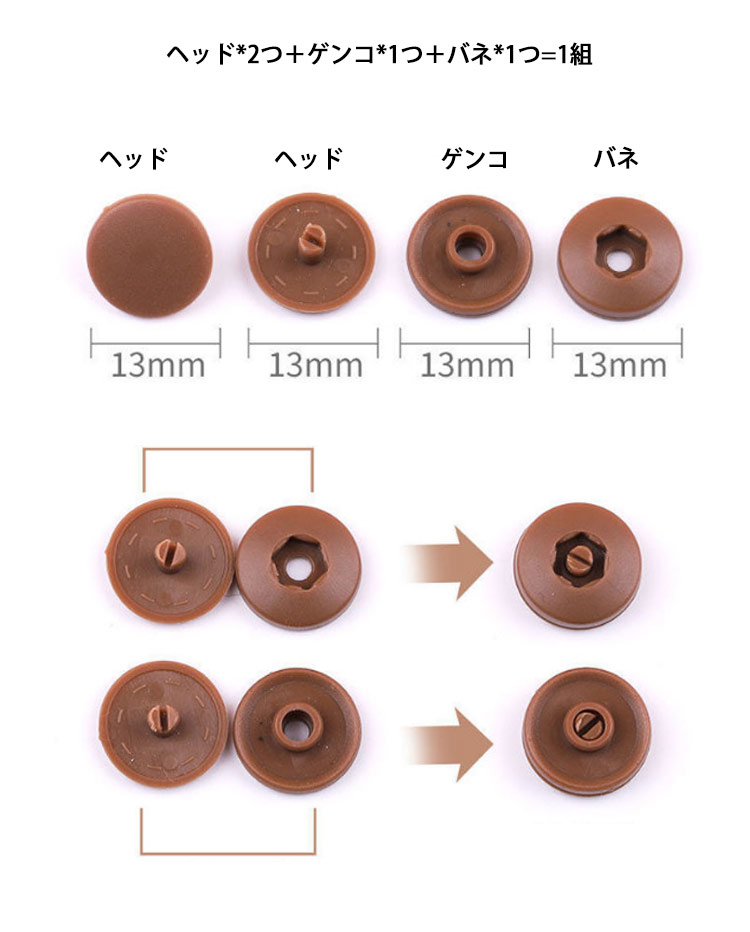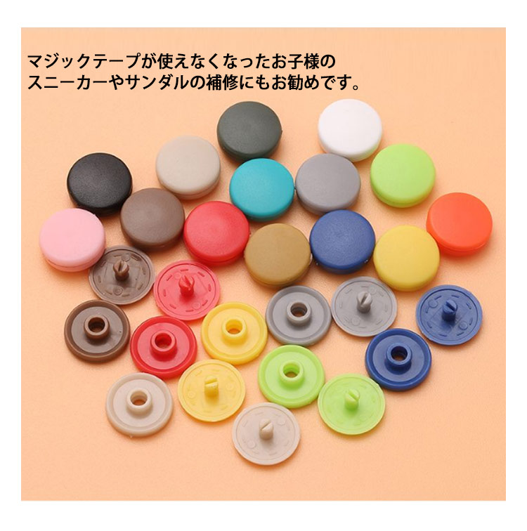 工具不要 ワンタッチスナップ プラスナ 手芸 クラフト 生地 裁縫材料 ボタン 人気 ホワイト ブラック レッド ダークブルー イエロー グリーン ピンク グレー ブラウン オレンジ ターコイズブルー ベージュ カーキ 茶色 白+黒