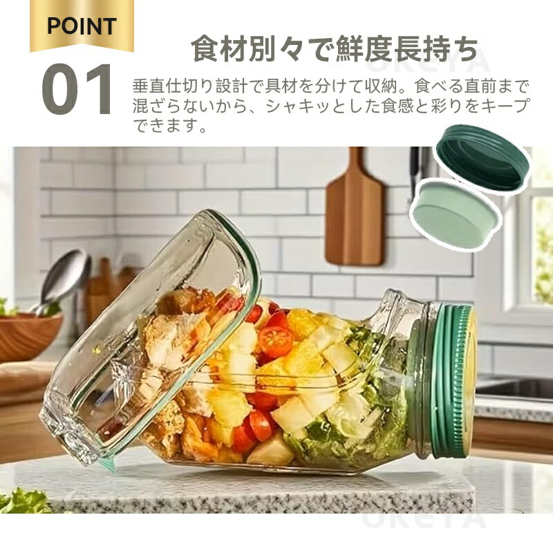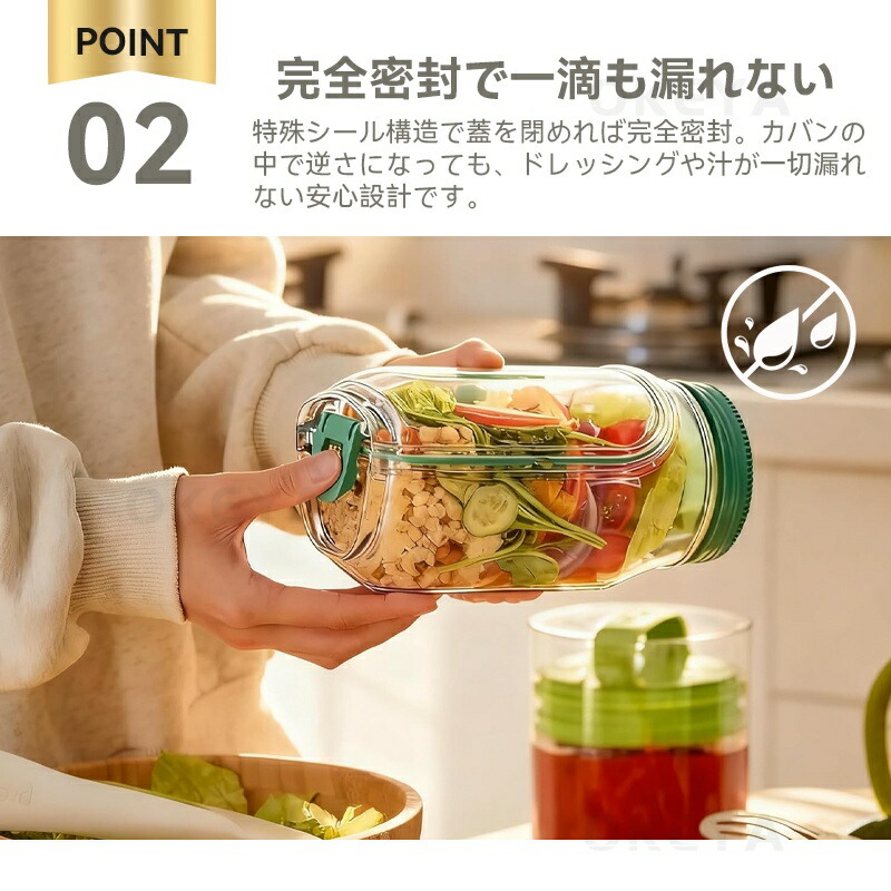 サラダ 弁当箱 側開き式 サラダポット キッチン用品 食器 調理器具 通販 グリーン オレンジ