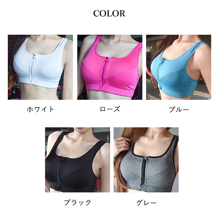 スポブラ フロントファスナー スポーツ スポーツウェア アクセサリー スポーツ用インナー レディースインナー スポーツブラ 特集 ホワイト ブルー ブラック グレー ローズ S M L