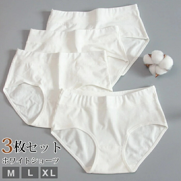 ホワイトショーツ 3枚セット パンティ インナー 下着 ナイトウエア 新登場! ホワイト ホワイト(ハイウエスト) M L XL