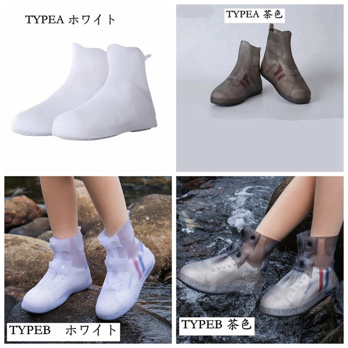 シューズカバー 雨用 靴用防水カバー typeAホワイト typeA茶色 typeBホワイト typeB茶色 M L XL 2XL 3XL
