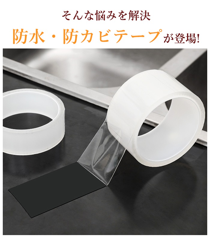 防水テープ 防カビ 透明 浴室 強力 日用品雑貨 文房具 手芸 続々登場 透明1個 透明2個セット 透明3個セット