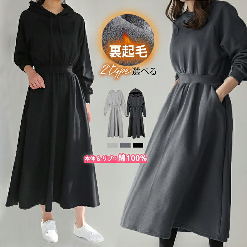 ワンピース 2TYPE選べる 裏起毛 ワンピース 超目玉商品 ブラック(パーカー TYPE) ダークグレー(パーカー TYPE) ライトグレー(パーカー TYPE) ダークグレー(トレーナー TYPE) ライトグレー(トレーナー TYPE)