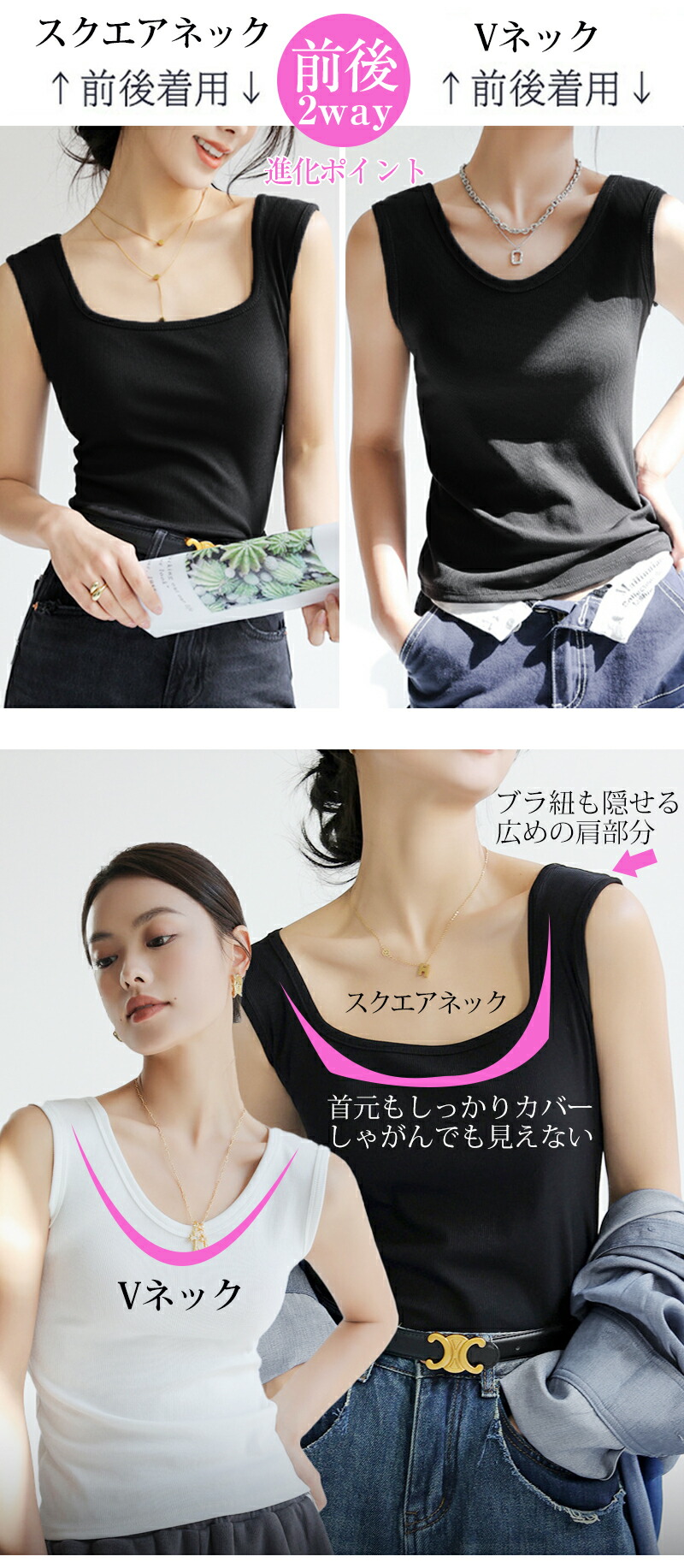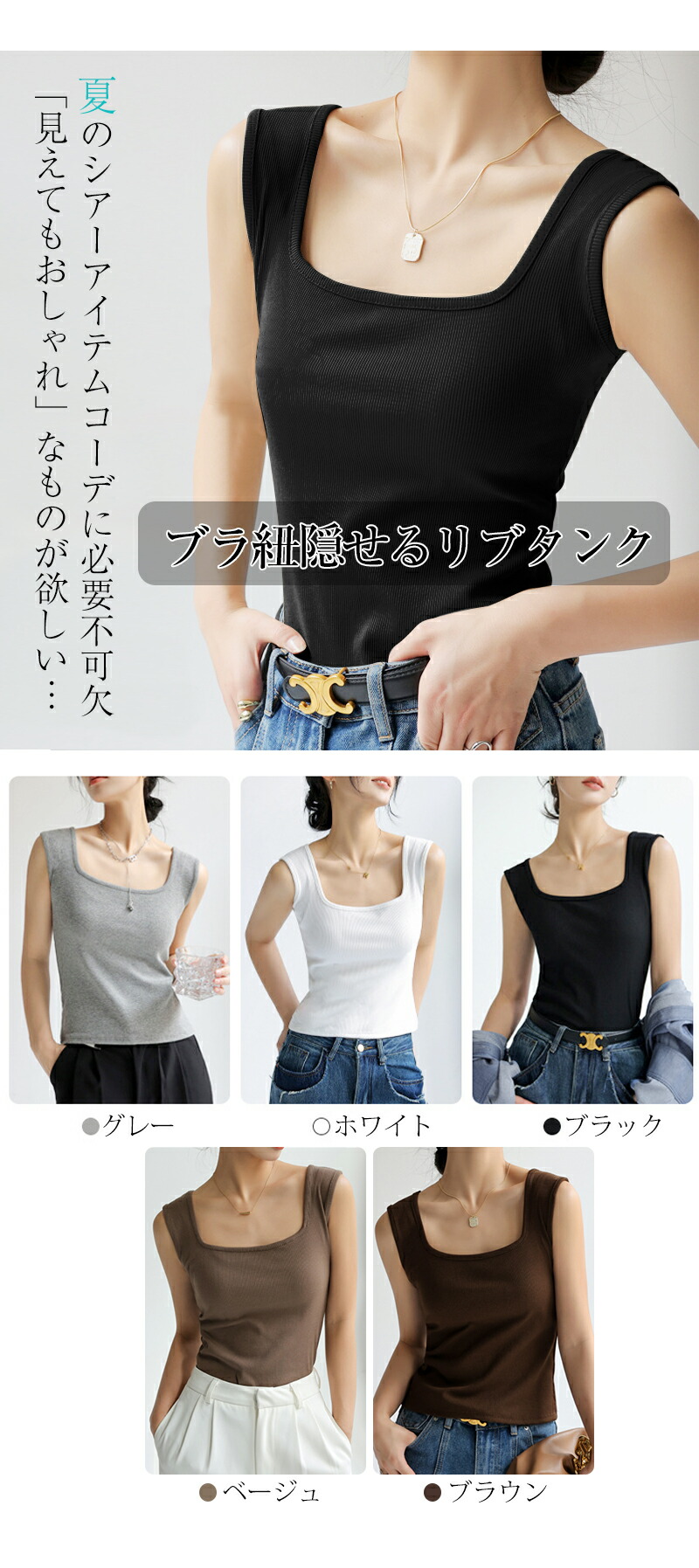 ブラ紐隠し インナー 2way タンク レディースファッション 豊富な品揃え ブラック ホワイト グレー ベージュ M L XL