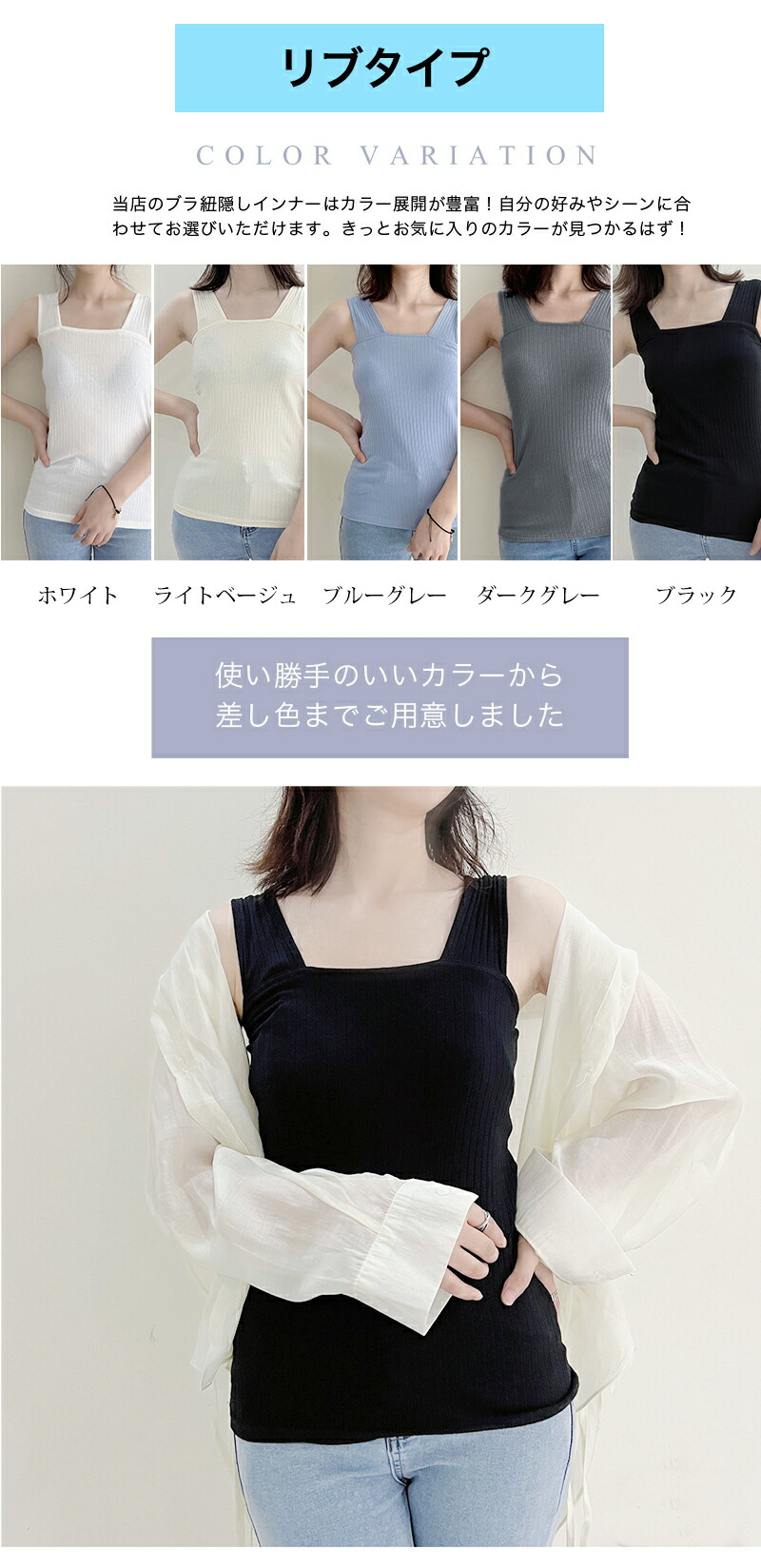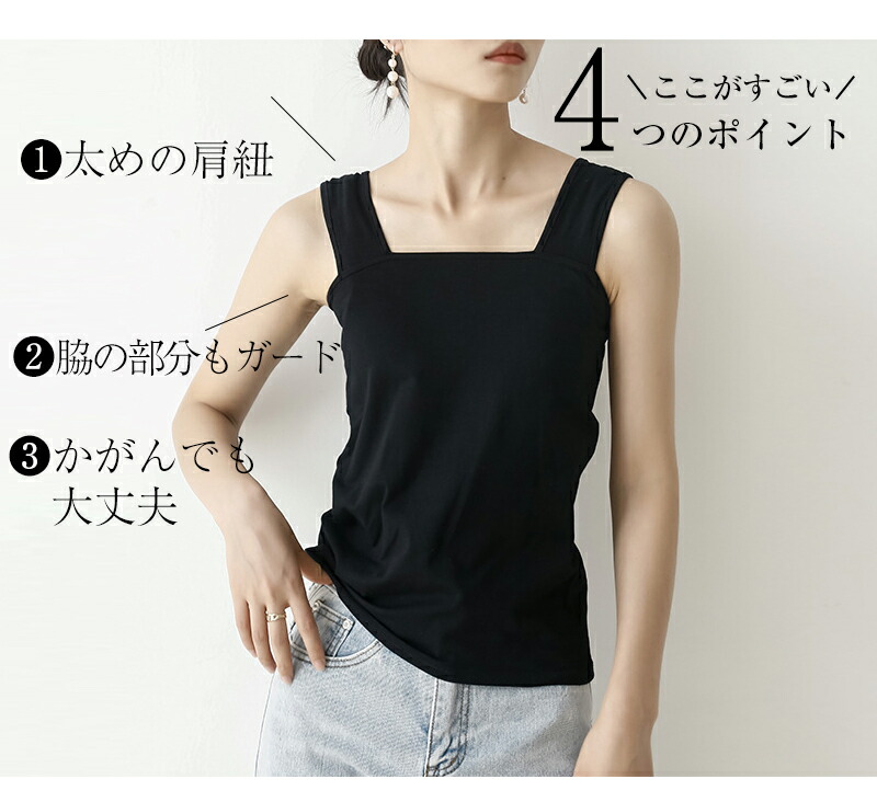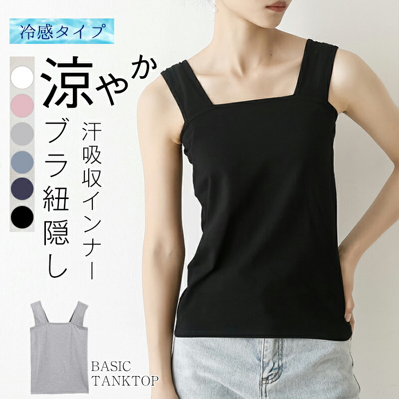 新色追加 冷感タイプ登場 ブラ紐隠し ブラ紐隠しインナー タンクトップ タンク キャミソール インナー レディース トップス 脇汗 抗菌防臭 汗取りインナー 脇汗ガード 黒 シンプル 定番 重 白