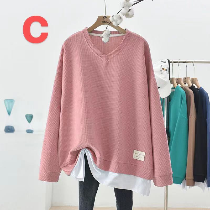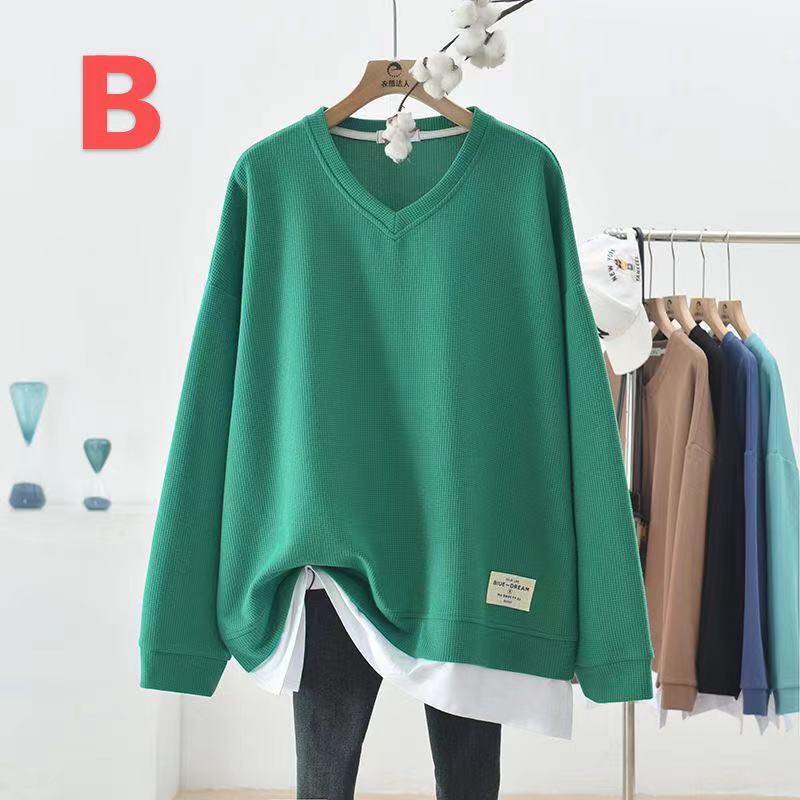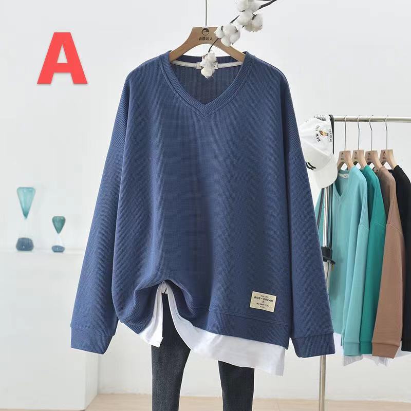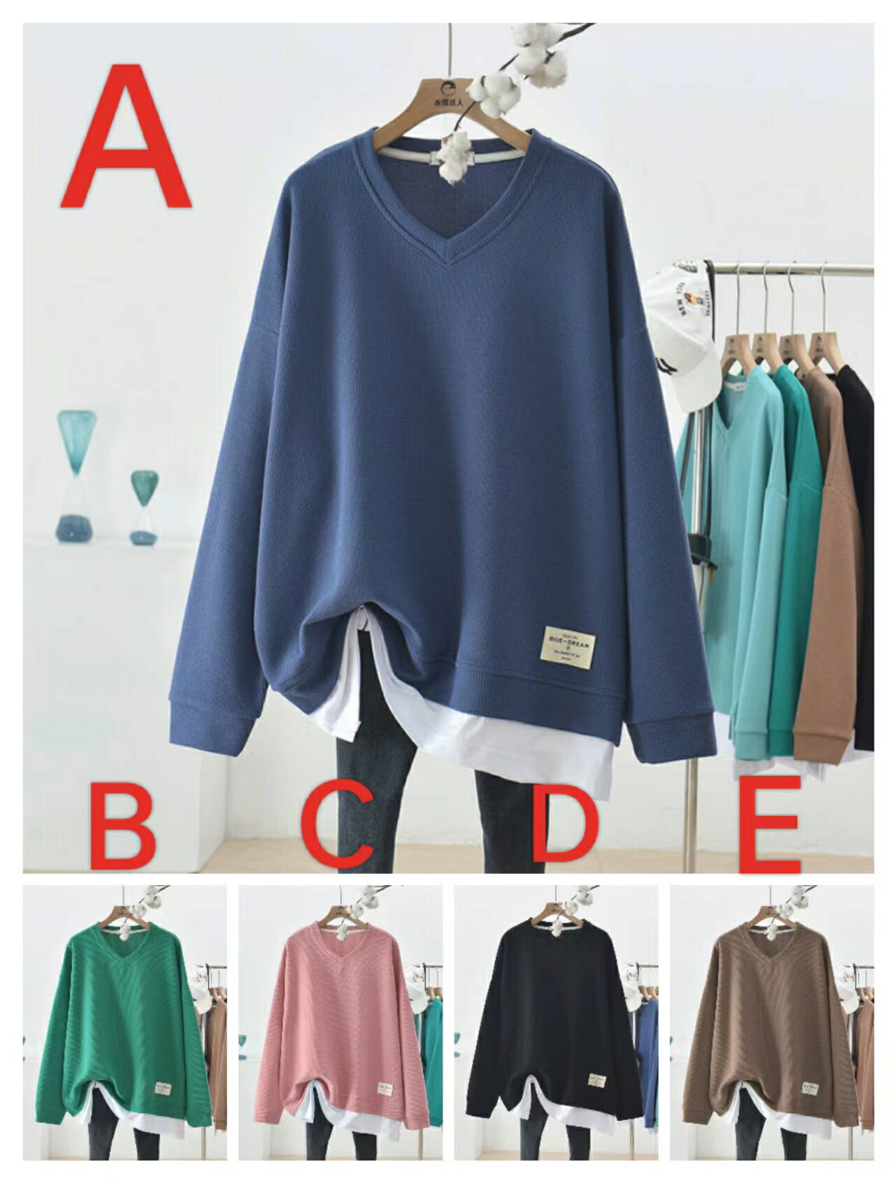 トレーナー レディース 薄手 重ね着風 トップス スウェット トレーナー 特集 ブルー グリーン ピンク ブラック コーヒー L XL 2XL 3XL 4XL