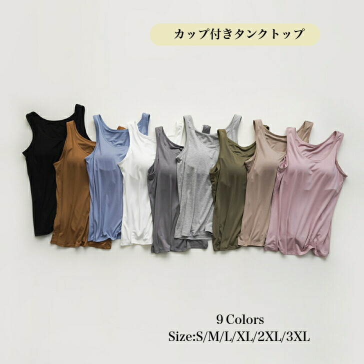 ブラトップ タンクトップ カップ付き インナー 下着 ナイトウエア 豊富な品揃え ブラック ホワイト グレー ダークグレー ピンク ベージュ ブラウン カーキ ブルー S M L XL 2XL 3XL