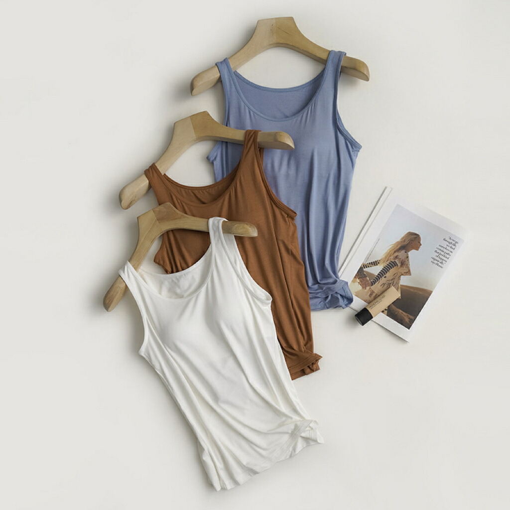 タンクトップカップ付き ワイヤなし ブラタンク モダール 自然素材 ストレッチ カップ付きインナー キャミソー ノンワイヤー S M L XL 2XL 3XL 肌着 下着 伸縮性 通気性 無地