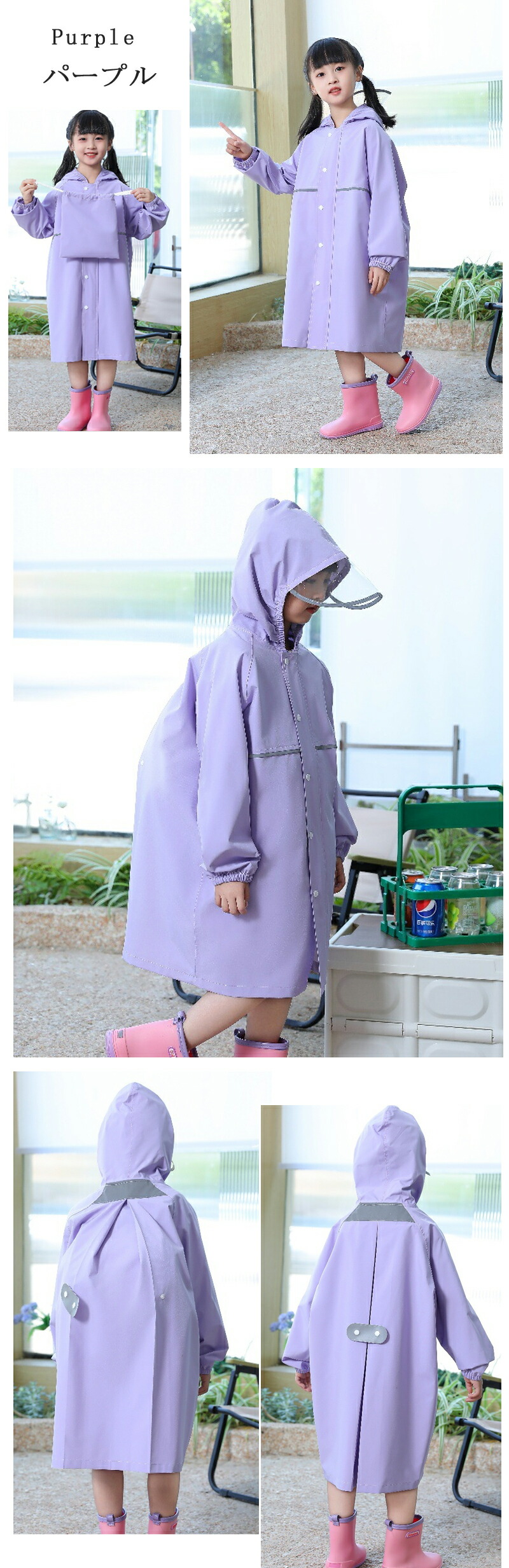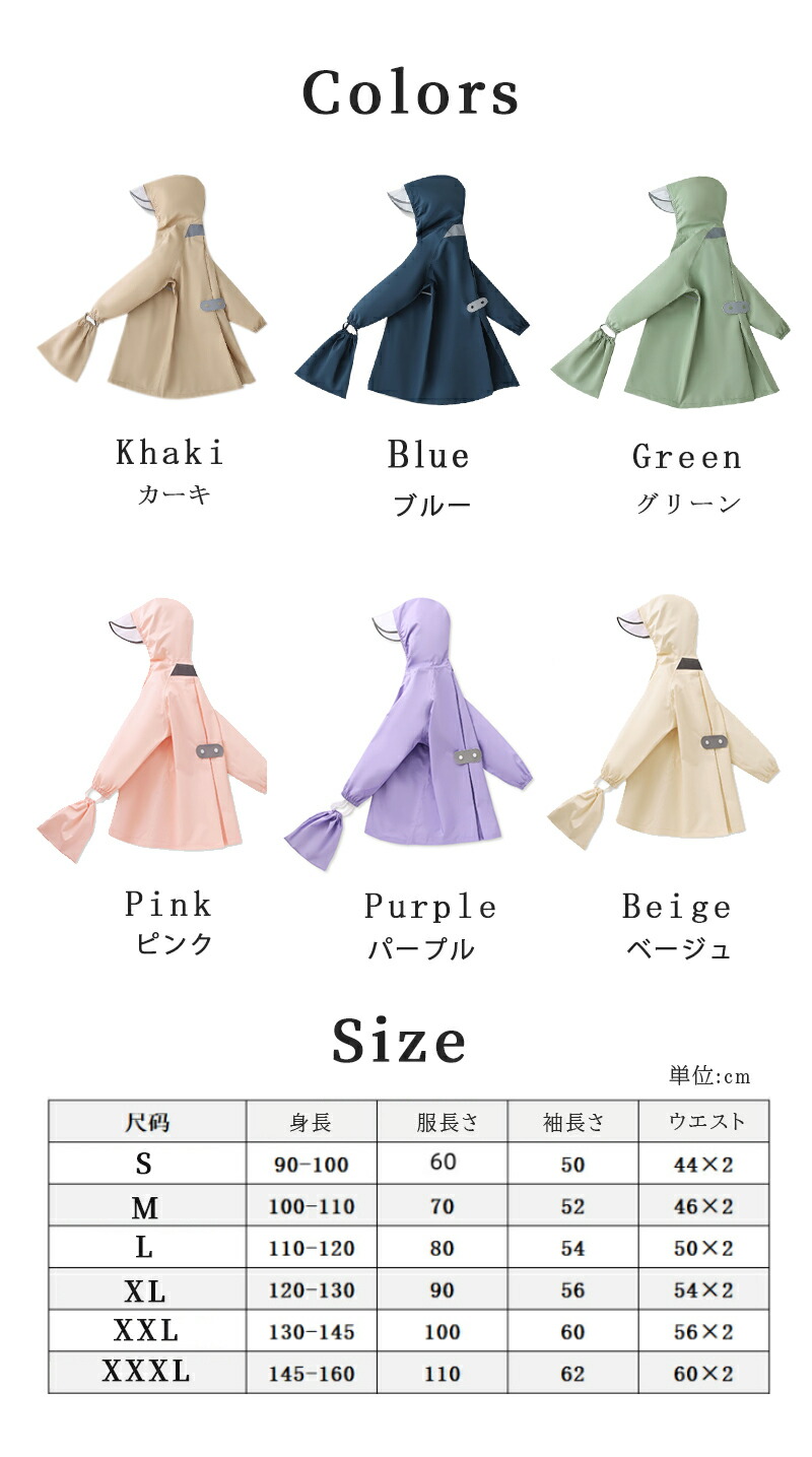 レインコート キッズ ランドセル対応 キッズ レインウェア 傘 レインコート 特集 ブルー ベージュ グリーン カーキ ピンク パープル S M L XL XXL XXXL