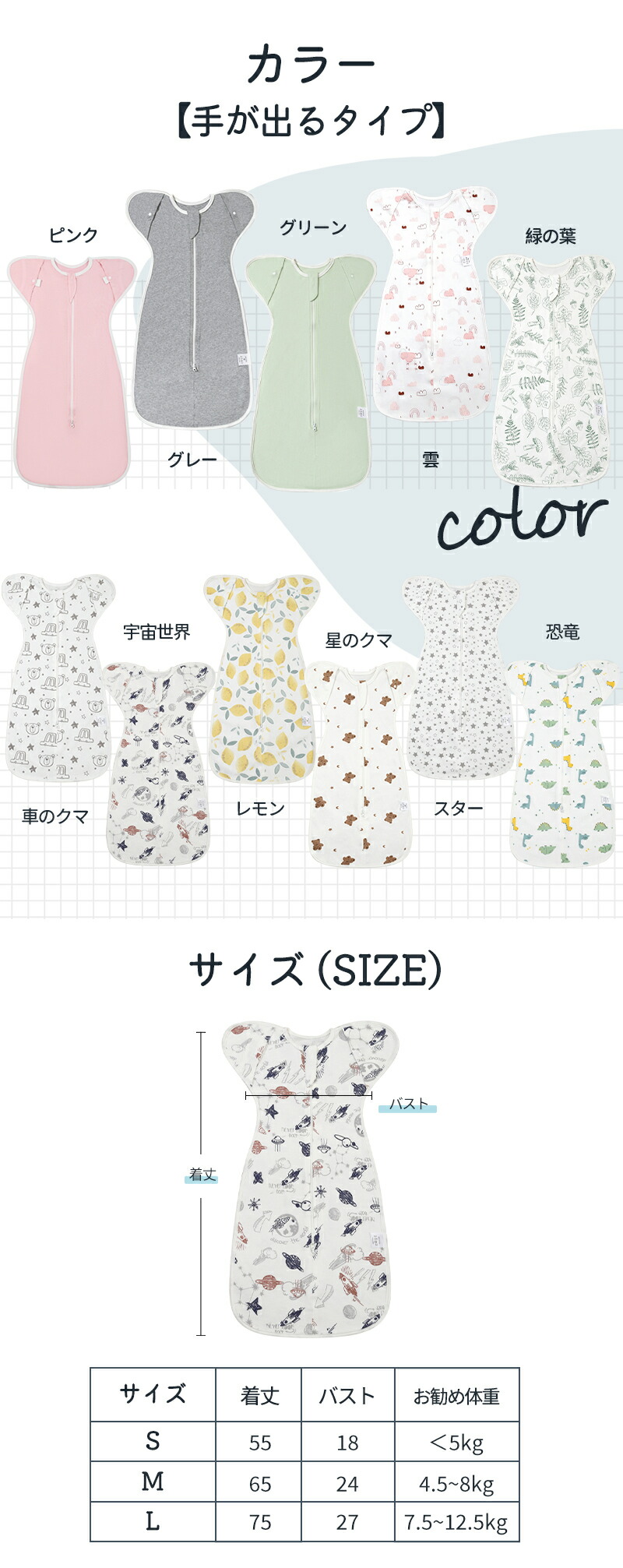 スワドル 赤ちゃん おくるみ 夏 ベビ ベビー ベビー服 ファッション おくるみ 通販 通常タイプ(手不可出) 手が出るタイプ メッシュタイプ レモン 宇宙 グリーン ピンク グレー ホワイト 海生物 木の葉 恐竜 車のクマ スター 宇宙世界 緑の葉 星のクマ 雲 イエロー ブルー