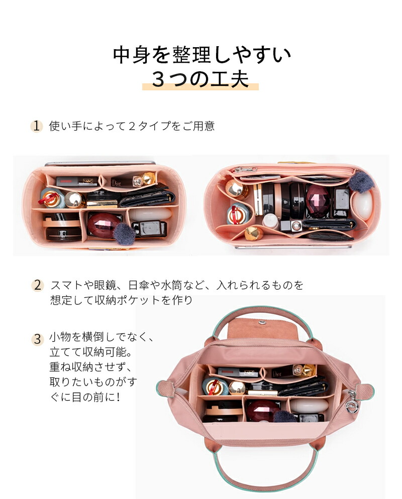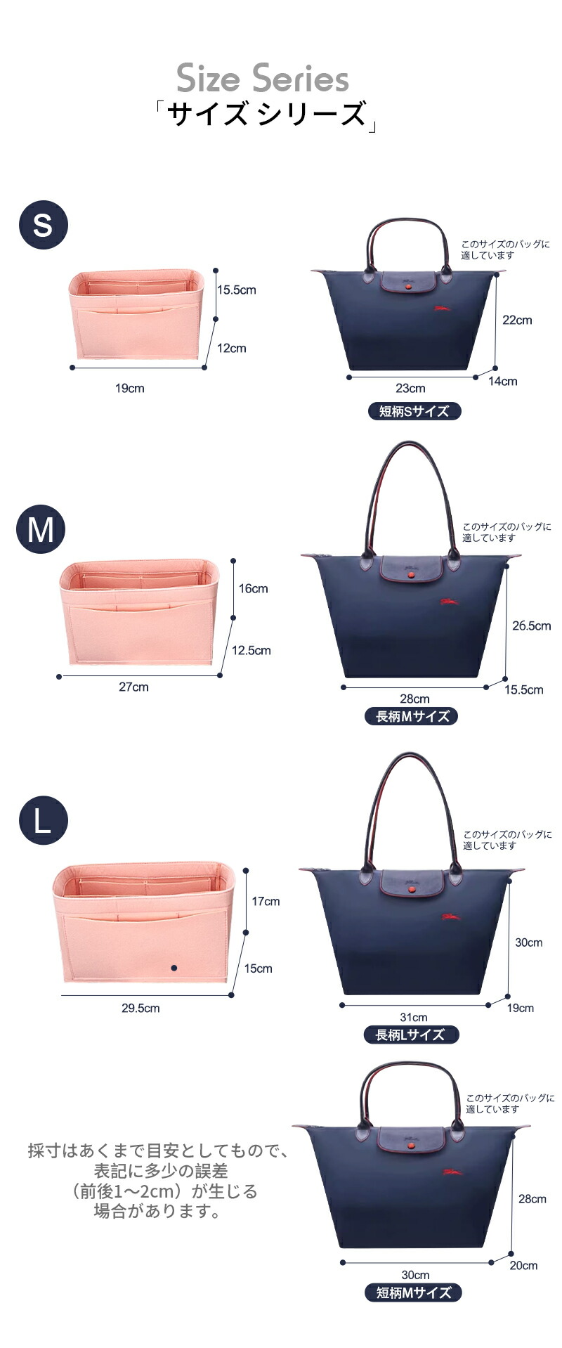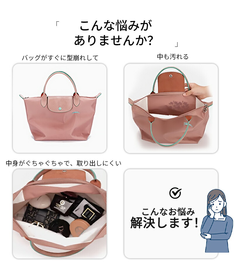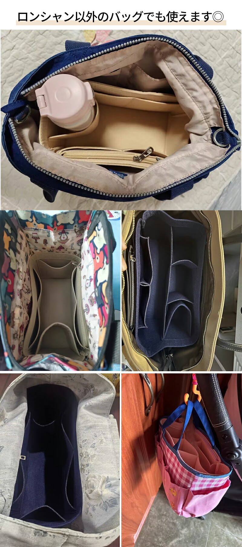 バッグインバッグ ロンシャン バックイ バッグ バッグ用アクセサリー バッグオーガナイザー バッグインバッグ 人気 ブラック ネイビー ベージュ ピンク 短柄小 19*15.5*12cm 長柄中27*16cm*12.5cm 長柄大&短柄中29.5*17*15cm
