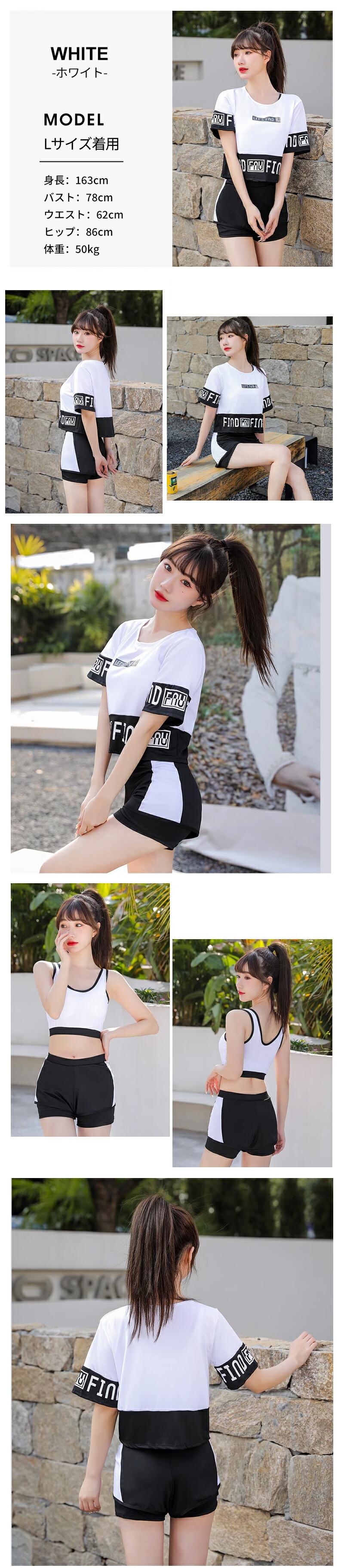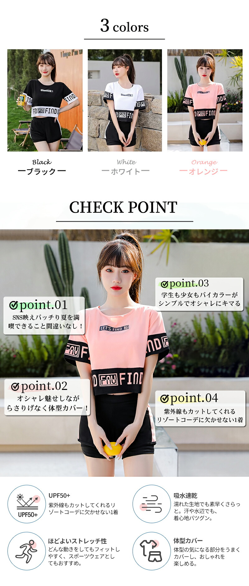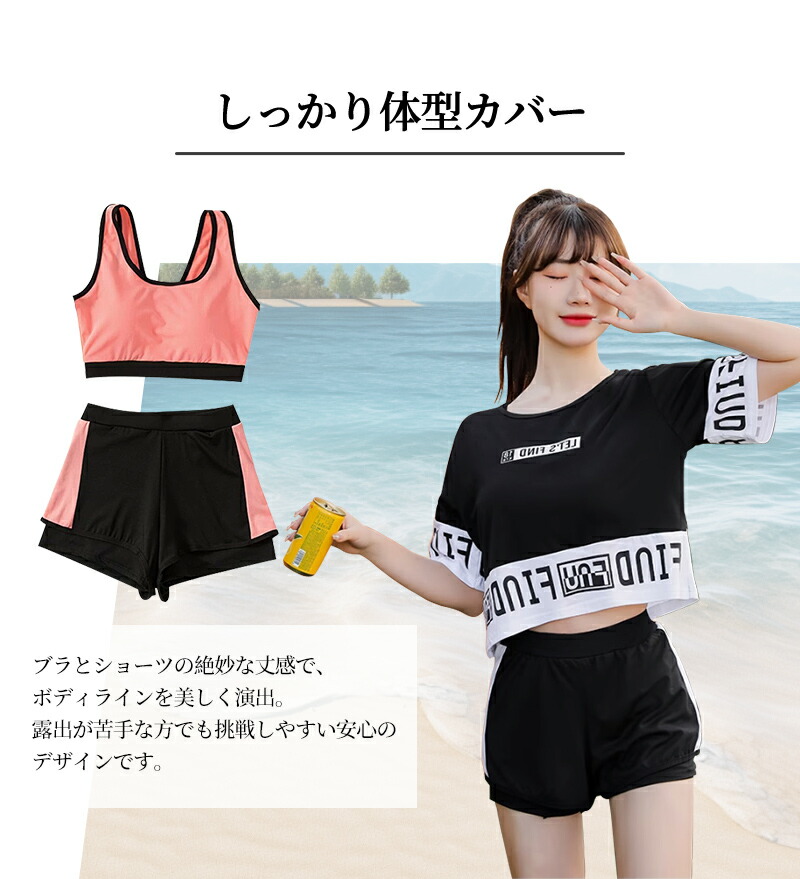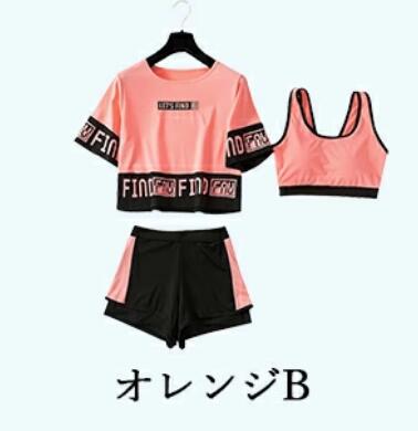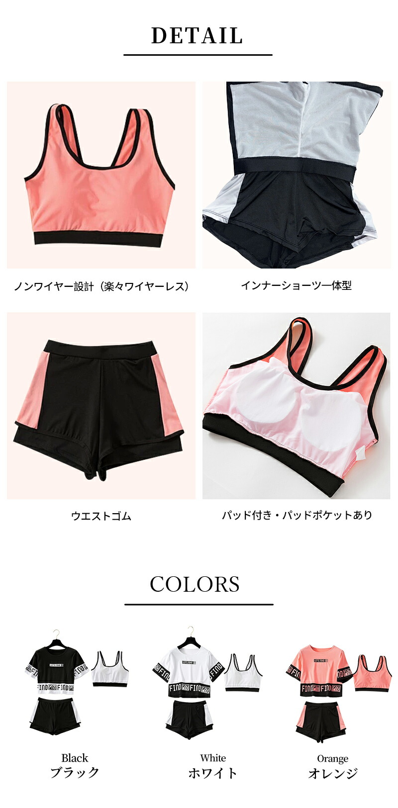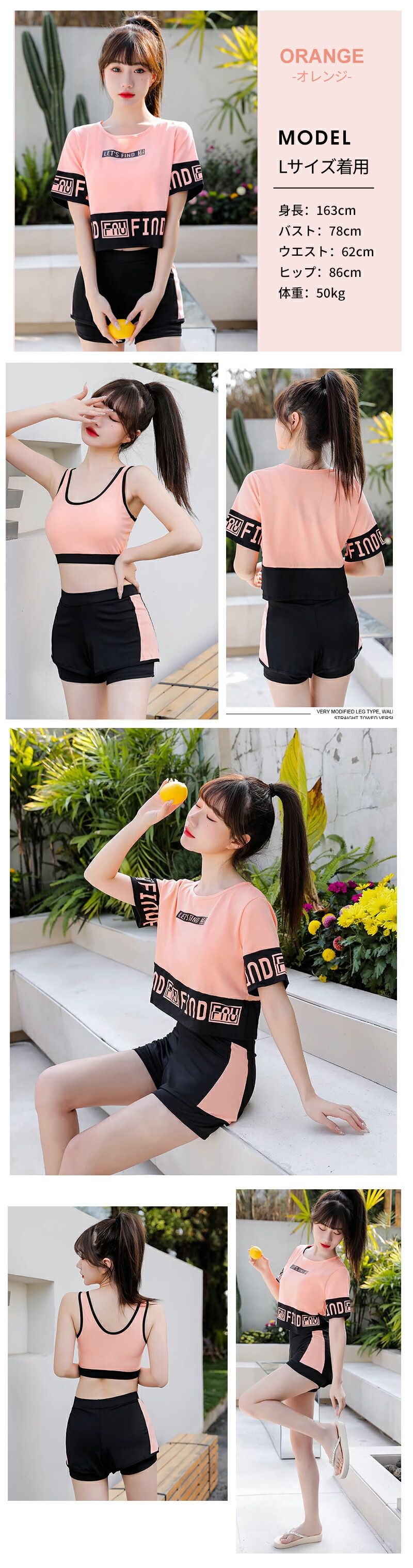 水着 中学生 3点セット 体型カバー レディースファッション 続々入荷中 ブラック ホワイト オレンジ S M L XL