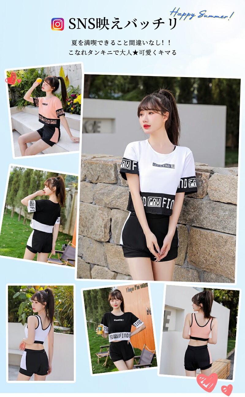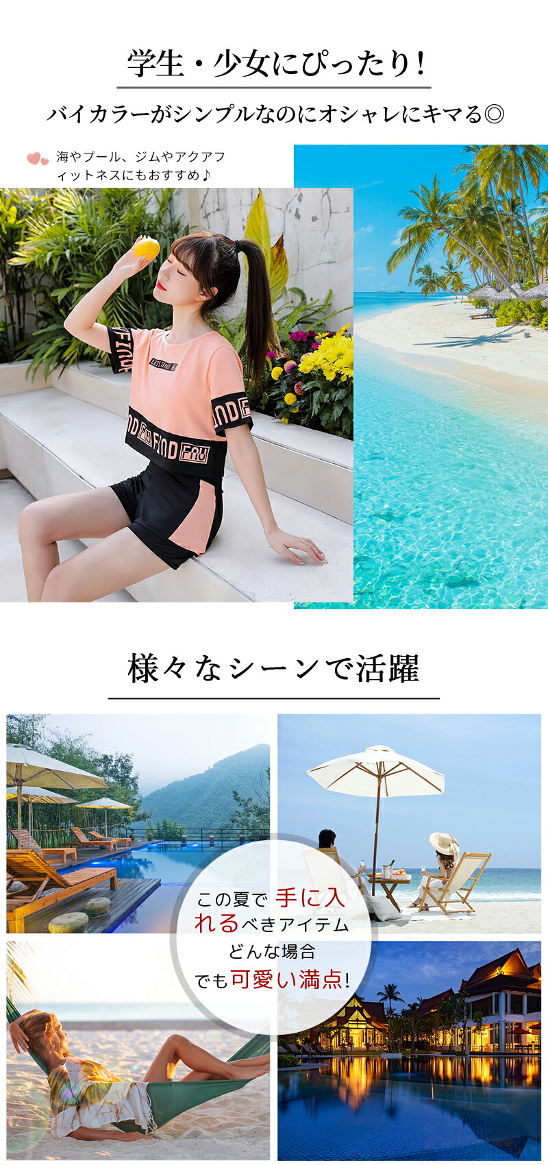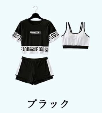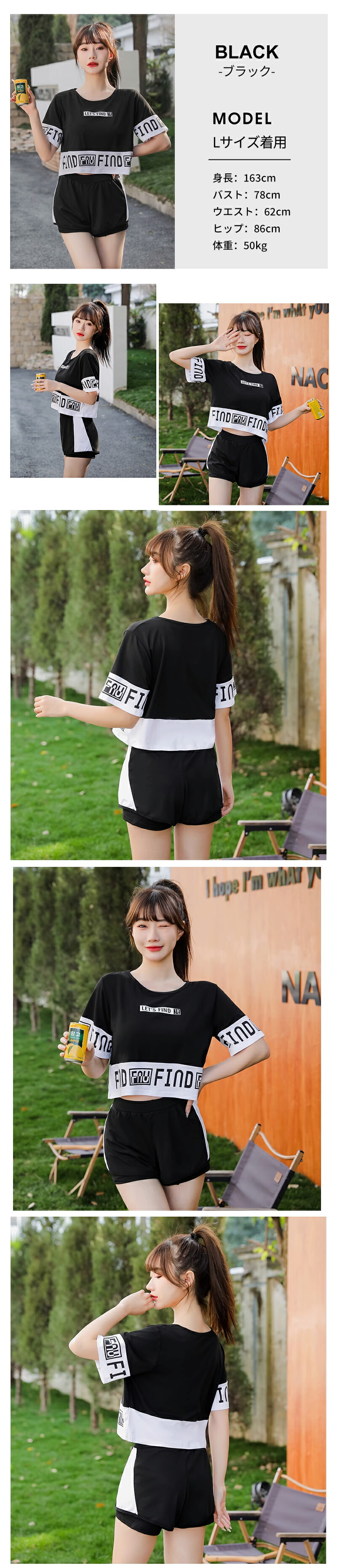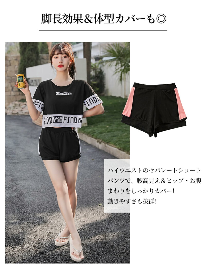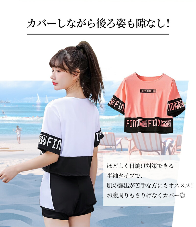 水着 中学生 3点セット 体型カバー レディースファッション 続々入荷中 ブラック ホワイト オレンジ S M L XL