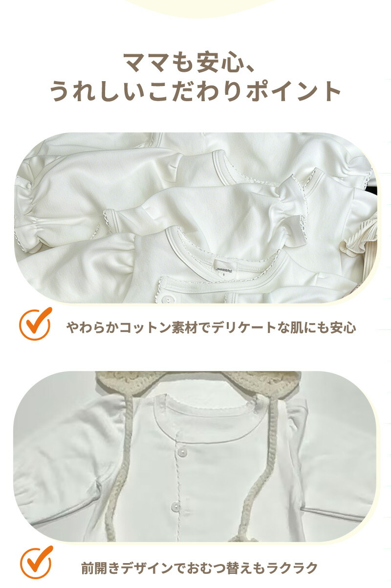 退院着 ベビー ロンパース 新生児 セ キッズ ベビー マタニティ 豊富な品揃え 帽子あり ホワイト 帽子あり ベージュ 帽子なし ホワイト 帽子なし ベージュ 66(60~65cm) 73(65~70cm) 80(70~75cm) 90(75~80cm)