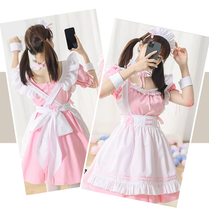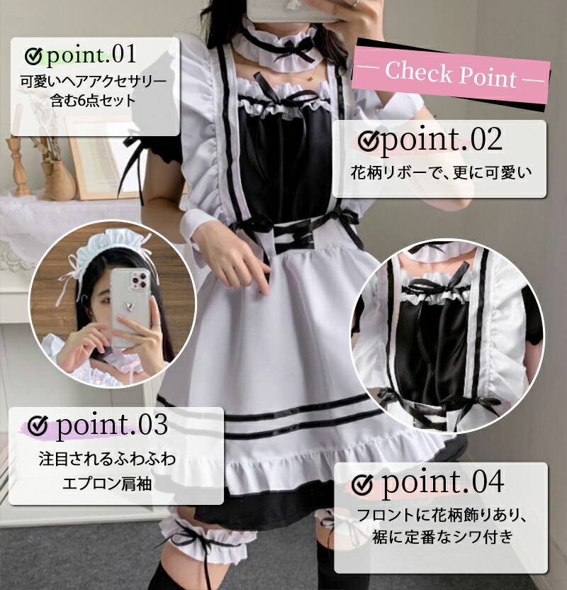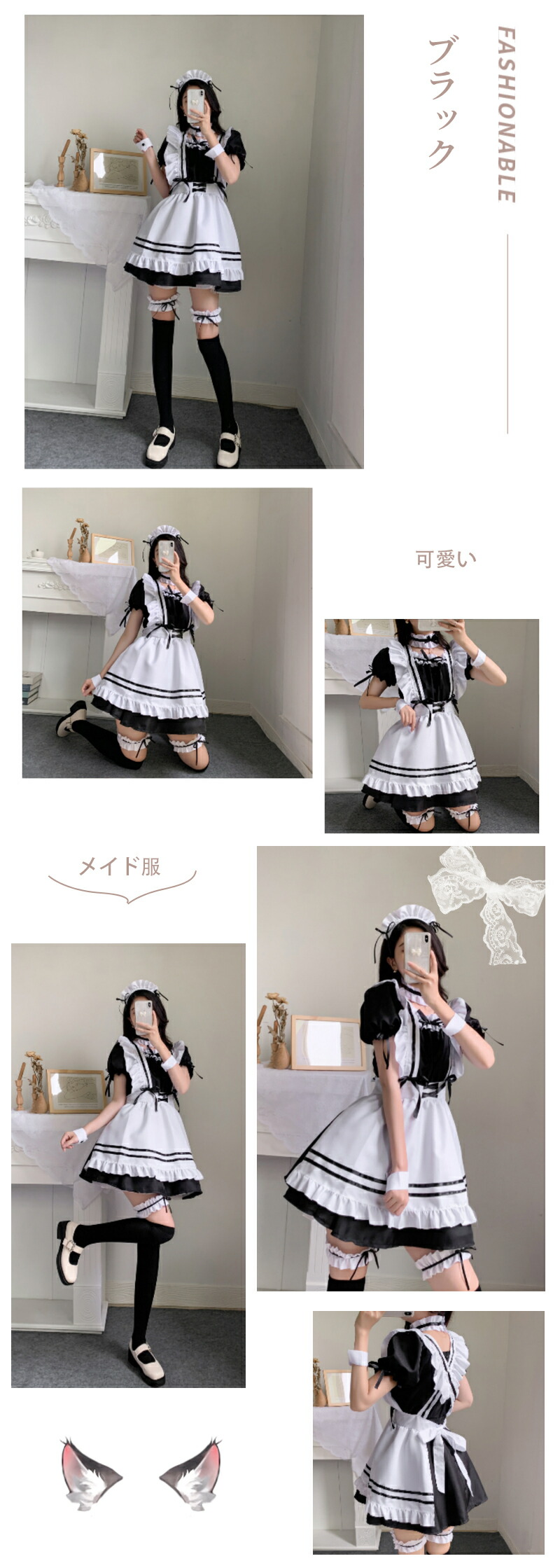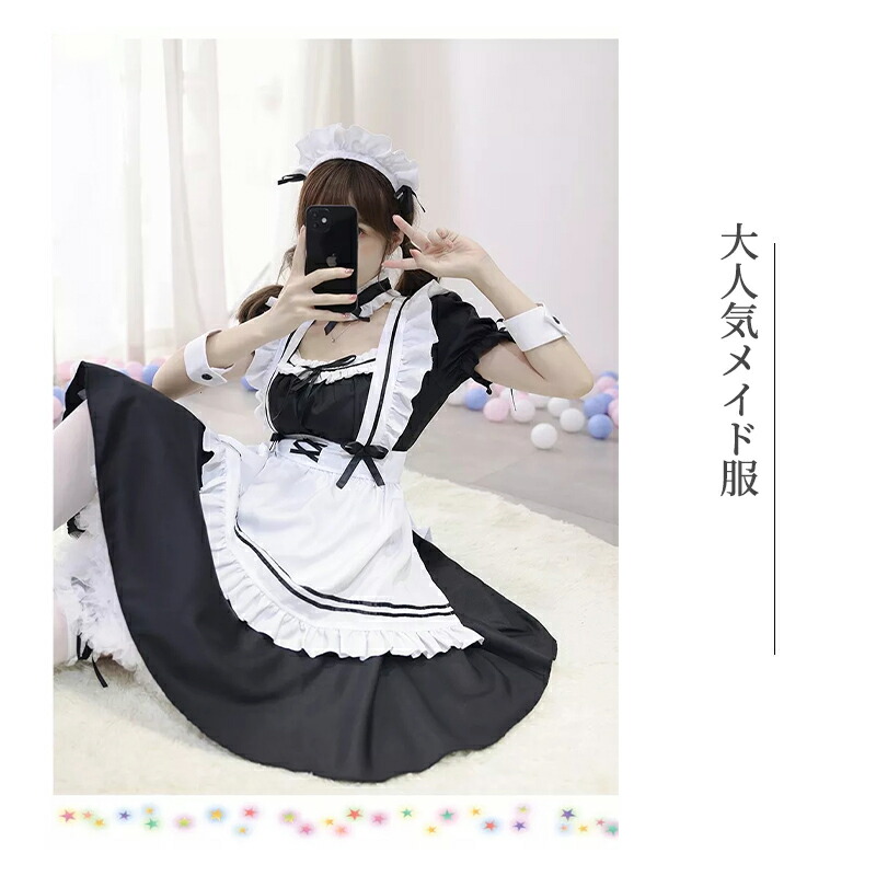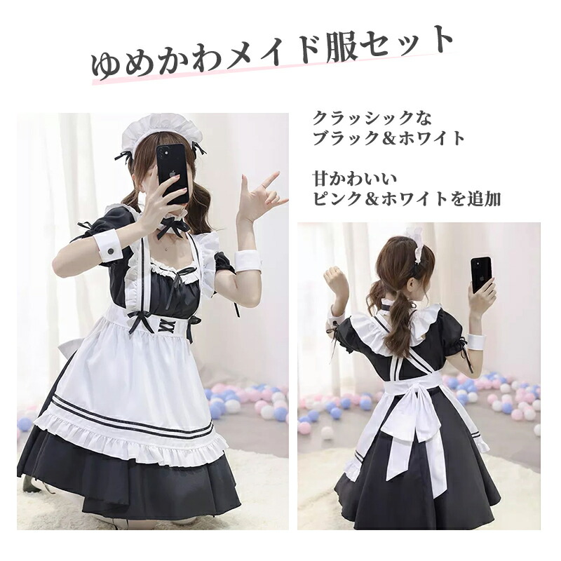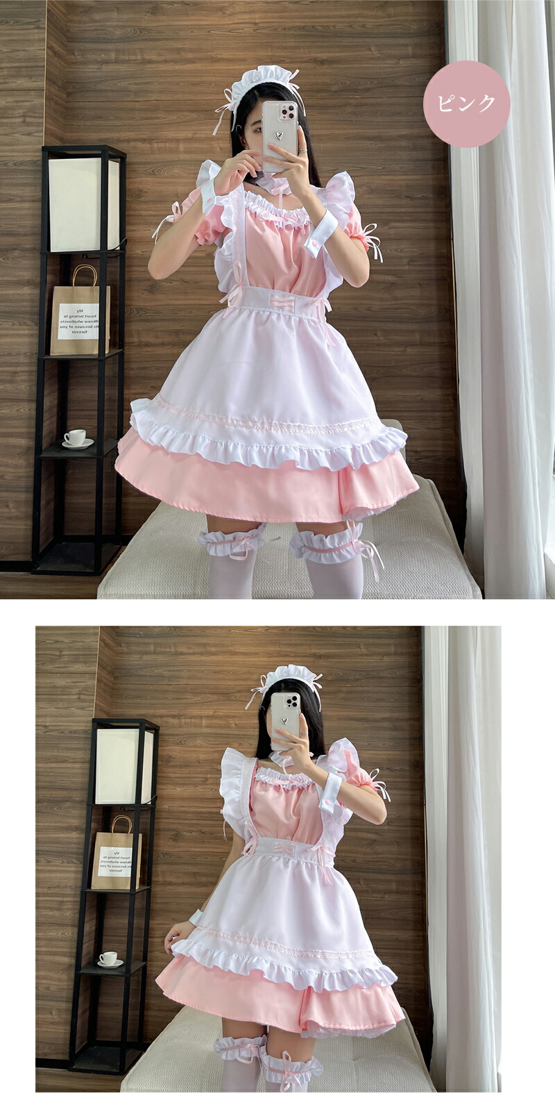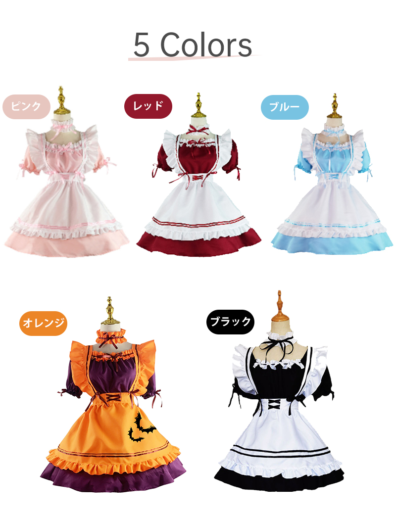 メイド服 メイド 服 6点セット コス ホビー 超目玉商品 ブラック ピンク ブルー レッド オレンジ S M L XL 2XL 3XL 4XL 5XL